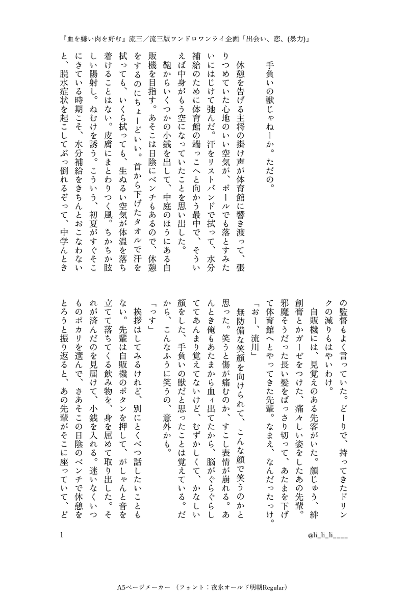 li_li_li____☆quiet followDONE流三『血を嫌い肉を好む』流三版ワンドロライ企画参加作品お題:出会い、恋、(暴力) show all(+2 images) Tap to full screen (size:888x1300).Repost is prohibited Let's send reactions! freqpopularsnackothersPayment processing Replies from the creator Follow creator you care about!☆quiet follow li_li_li____DONE🔞流三『xxx』流三版ワンドロライ企画参加……に間に合わなかった作品お題:キスるみつがセックスしながらめちゃくちゃキスしてるだけのお話性描写しかない作品のため、18歳未満の方の閲覧はご遠慮ください 3 li_li_li____DONE流三🔞『まだ触れないで』35歳×38歳くらいの両片想い流三が飲み会で再会してラブホへ雪崩れ込む話▼いろんなキャラでてくる▼時代設定ふわふわめ性描写がある作品のため、18歳未満の方の閲覧はご遠慮ください 11 li_li_li____DONE流三『食べる/交わる/殺す』流三版ワンドロライ企画参加作品お題:傷 3 li_li_li____DONE流三『春と修羅』三井が卒業する日のるみつのお話三井受けwebオンリー「天上天下三井独尊4~サクラサク321の日~」展示作品 5 li_li_li____DONE流三『無惨』/不倫してる成人のるみつ(既婚は三のほう) 4 li_li_li____DONE流三『血を嫌い肉を好む』流三版ワンドロライ企画参加作品お題:出会い、恋、(暴力) 3