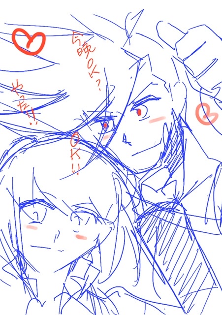 ラブっぽいのを描こうとしてる。5分ドロ。