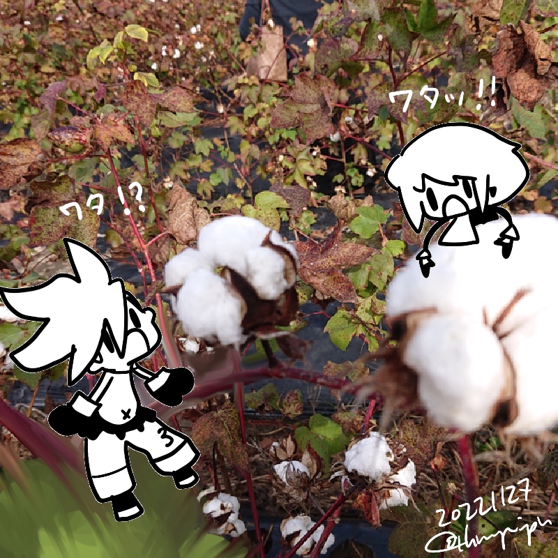 綿花畑に入ったり、工房見学したり。紅葉も楽しんだよ!