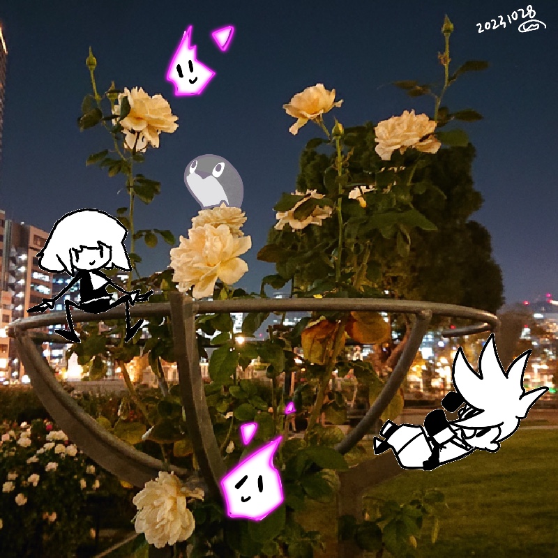 夜のお庭も昼の街も。