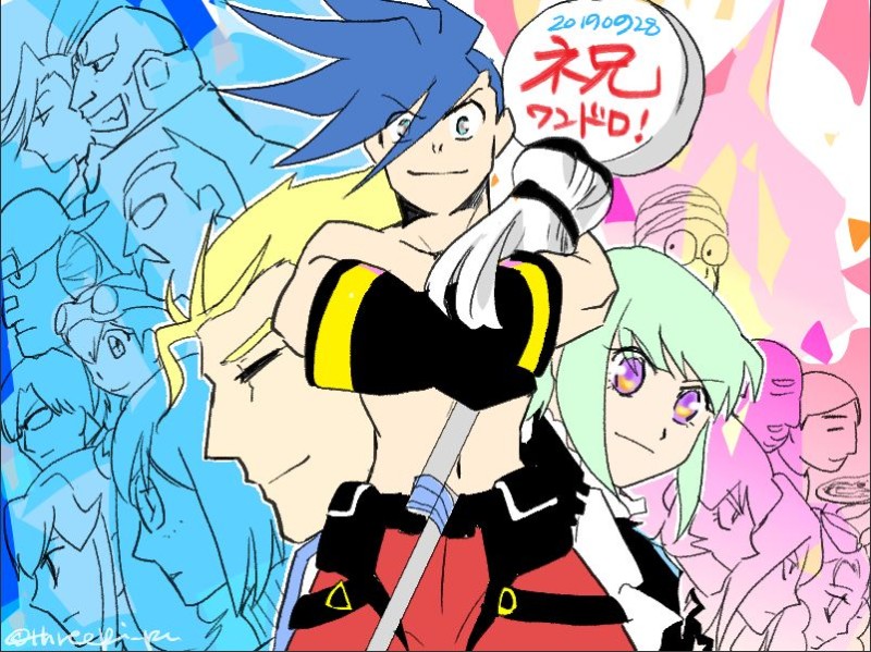 プロメアのワンドロが始まったので、1回目参加の時に投稿した絵と、その後塗り分けした差分と。