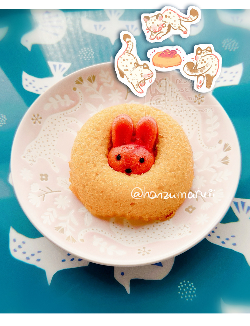 一目惚れして買ってきたお菓子をお皿にのっけたら猛獣に取り囲まれた哀れなウサちゃんの図になった