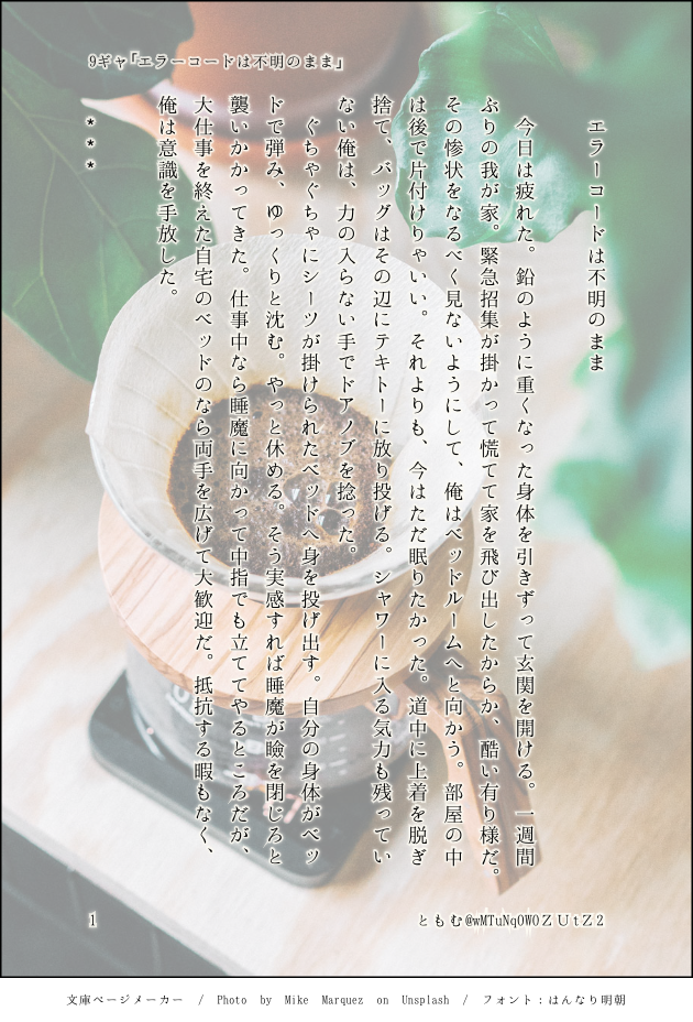 読みたいと思う方はプロフィールに年齢の表記(18歳以上かどうか)をして、ツイッターにて私にリプしていただければと思います。年齢を確認でき次第リスインさせていただきます。