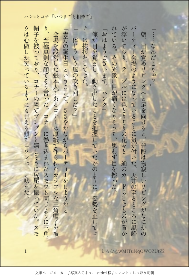読みたいと思う方はプロフィールに年齢の表記(18歳以上かどうか)をして、ツイッターにて私にリプしていただければと思います。年齢を確認でき次第リスインさせていただきます。