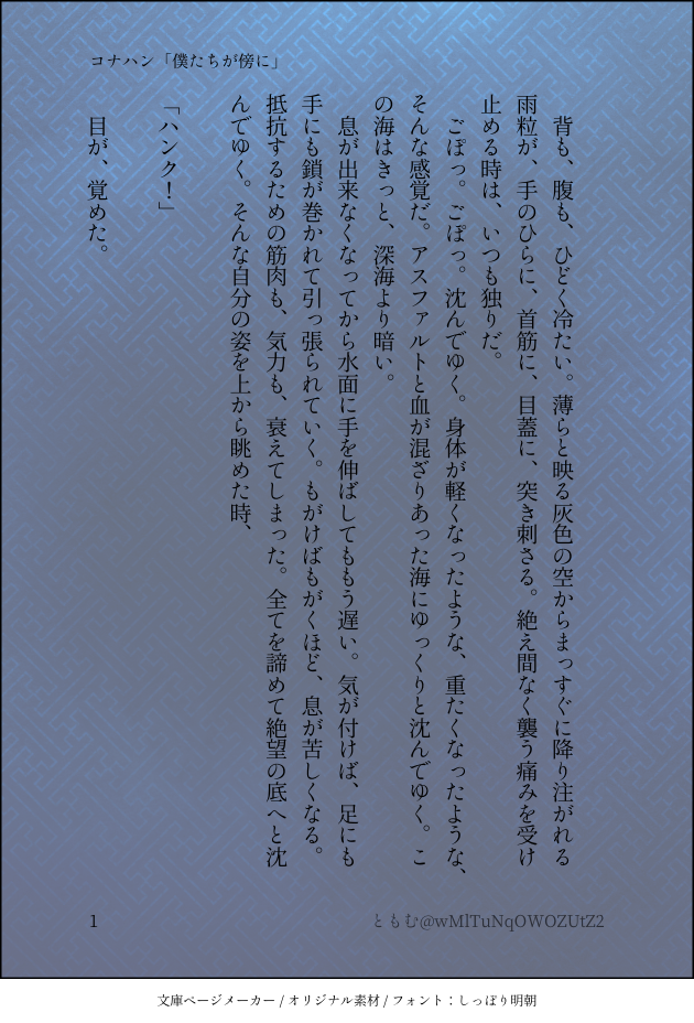 読みたいと思う方はプロフィールに年齢の表記(18歳以上かどうか)をして、ツイッターにて私にリプしていただければと思います。年齢を確認でき次第リスインさせていただきます。