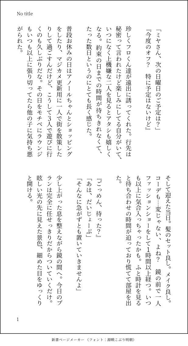 Mi_fl11O5☆quiet followPAST💌 ちゃんの過去話。ちょっとシリアス。泳げなくなったのはお相手の所為。インスピ元は原作の「Kiss the Girl」 #フロみや show all(+4 images) Tap to full screen (size:618x1132).Repost is prohibited Let's send reactions! freqpopularsnackothersPayment processing Replies from the creator Follow creator you care about!☆quiet follow Mi_fl11O5PAST⚠️コテ猫化⚠️猫の日用に書いた無駄に長いお話。🦈🐬×💌 9 Mi_fl11O5MOURNING頂き物。卒業後~プロポーズまでの神シチュエーションが詰め込まれた1話。 2 Mi_fl11O5PAST💌 ちゃんの過去話。ちょっとシリアス。泳げなくなったのはお相手の所為。インスピ元は原作の「Kiss the Girl」 5 Mi_fl11O5PAST私がモブ視点で見た夢の小話。 5 Mi_fl11O5PAST記念日にフォロワー様に頂いた🦈💌 4 Mi_fl11O5PAST1年生軸。🦈と💌の距離が少し縮まるお話。 5 related works Mi_fl11O5PAST私がモブ視点で見た夢の小話。 5 Mi_fl11O5PAST⚠️コテ猫化⚠️猫の日用に書いた無駄に長いお話。🦈🐬×💌 9 Mi_fl11O5PAST記念日にフォロワー様に頂いた🦈💌 4 Mi_fl11O5PAST💌 ちゃんの過去話。ちょっとシリアス。泳げなくなったのはお相手の所為。インスピ元は原作の「Kiss the Girl」 5 Mi_fl11O5PAST出会いのお話。🐙🐹ちゃん友情出演。 5 Mi_fl11O5PAST1年生軸。🦈と💌の距離が少し縮まるお話。 5 Mi_fl11O5MOURNING頂き物。卒業後~プロポーズまでの神シチュエーションが詰め込まれた1話。 2 recommended works Mi_fl11O5MOURNING頂き物。卒業後~プロポーズまでの神シチュエーションが詰め込まれた1話。 2 Mi_fl11O5PAST⚠️コテ猫化⚠️猫の日用に書いた無駄に長いお話。🦈🐬×💌 9 めりぜDOODLE👁️💧娘ちゃん妄想🤍❄️ちゃんの戦闘スタイルメモとなんちゃってJK🤍❄️ちゃん前提👁️💧なのでタグありです。無断使用厳禁!AI学習厳禁!Do not use my pictures! 2 マイナスDONE2025.2.22 リンゼルオンリーの原稿もだもだ人(主に私)を応援しよう絵チャを開催しました🥰リンクとゼルダの部屋に分かれて描いたのですけど壁を壊そうとしとる子おるし壁から距離のあるリンクはエロ本読んどるしでずっと笑い転げてました🤣遊びに来てくださった方本当にありがとうございました…!💕 nekoDOODLE 2 iboooornTRAININGシャアシャリ 222の日🐈⬛🐾続き(R18部分)Pass:Over 18?(yes/no) 4 ユーウMEMO かにおDONEミスルチwebオンリー(仮)2の展示物ですミスルチが一緒にお風呂入る話(11p/R18)お互い気を許せる相手なのに甘え方が違うのが好きだな~という気持ちと、世界を救う賢まほたちの部屋にはせめて3点ユニットあって欲しい…という気持ちで描きました🤲pass:18↑?(y/n) 11 ちくらDONE1日遅れの猫の日(こくびび)