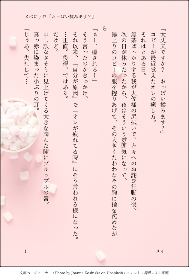 np_zero1☆quiet followDONEメポにょびちゃん話。字書き用BLお題ボタンみんなのボタンメーカーさんお題「おっぱいもむ?」より。Rは・・・いらないよね? show all(+2 images) Tap to full screen (size:630x928).Repost is prohibited Let's send reactions! freqpopularsnackothersPayment processing Replies from the creator Follow creator you care about!☆quiet follow np_zero1DONEメポにょびちゃん話。字書き用BLお題ボタンみんなのボタンメーカーさんお題「おっぱいもむ?」より。Rは・・・いらないよね? 3 np_zero1DONEでぃじーさんの「地獄より」シリーズのFA。モブ👓(ビダ船の頃)※モブレ、無理矢理、♡喘ぎ鍵⇒18歳以上ですか? 5 np_zero1DOODLE少雑ネタでTwitterで騒いでたの、書きたい所だけ書いた!ネタでは、最後ハッピエンドで話していますが、書いたのは強姦シーンのみ。※⛑👓、強姦シーンのみ。鍵>18歳以上ですか? 4 np_zero1DOODLE前についったに上げたSS供養。⛑⚯で、甘える大佐の話。ホノボノ。 4 np_zero1DOODLEデイジー氏に捧げた👓⛑。現代パロで、デイジー氏の書いている縄師の設定を元に書きました。※R18風味!小スカあり!パスワード→18歳以上ですか?y/n 4 recommended works ともりDOODLE朝菊 R18pass:18↑? Y/N choko_milk00DONETT 2 ほや🐟DOODLEFBIを煽り散らかすバーボン 2 ぽんぽんぺいん柏田MOURNINGほぼノリで書いたきさかぐ小説もどき。そんなに長くない。お前ら酒は好きか⁉️俺は飲めん。きさ(→)かぐの片思い。pass→俺の誕生日 1050 ふひひDONEオズのちっちゃいフィギュア 4 さのみっつDONEエアコレ開催おめでとうございます!妖ノ宮過去絵とか漫画のまとめです 大方夢宮。最後の一枚はスペースに使った書下ろしです。 16 miso_shiru39DOODLE蘭光自分が抱く側だと思ってた光秀 rhoneyb_DOODLEAre you over 18 years old? (Yes / No) obongo_trpgDOODLEクトゥルフ神話TRPG「ようこそ!迷冥市役所都市伝説課へ!」GM:のめづさんPLHO担当者:草薙/オボンゴHO新人:櫻木 灯/棗けいさんエンド5にてシナリオ終了ですわちゃわちゃ進めてめっちゃ楽しい卓でした〜!!!!のめづの初KPで回してもらったけど信じらないほどお上手過ぎてスッキリ遊べた…ほんまに感謝☺️