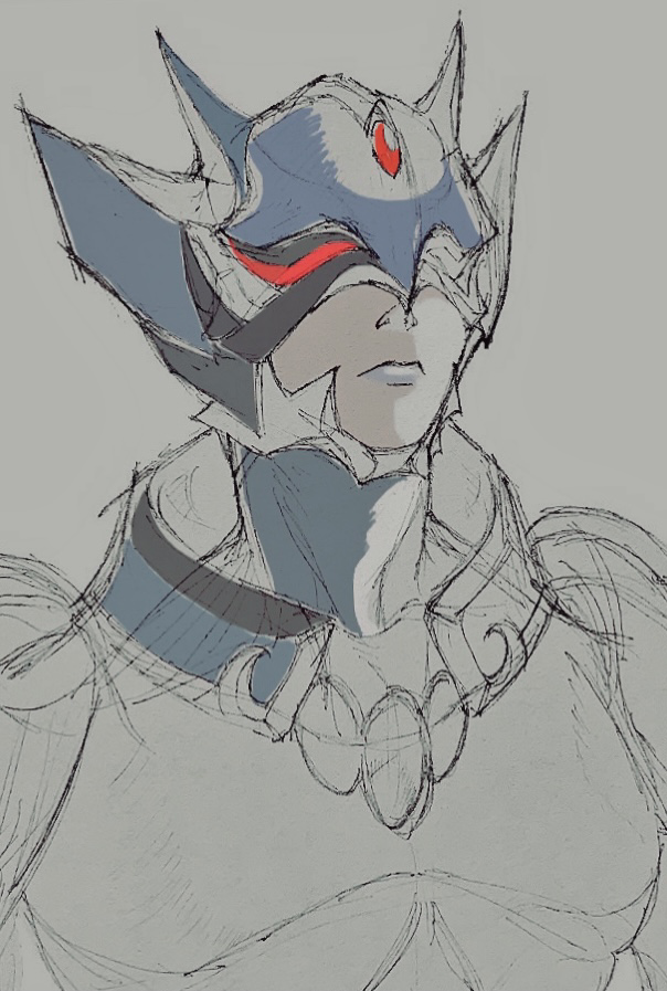 このデザインはカインの兜のように口元が露わになり色気もあり美しく、ベルセルクのフェムトにも似てる…形やシルエットがもっと明確になれば様々なアクションポーズをとらせて描いてみたいが可能だろうか…切実に資料が欲しい