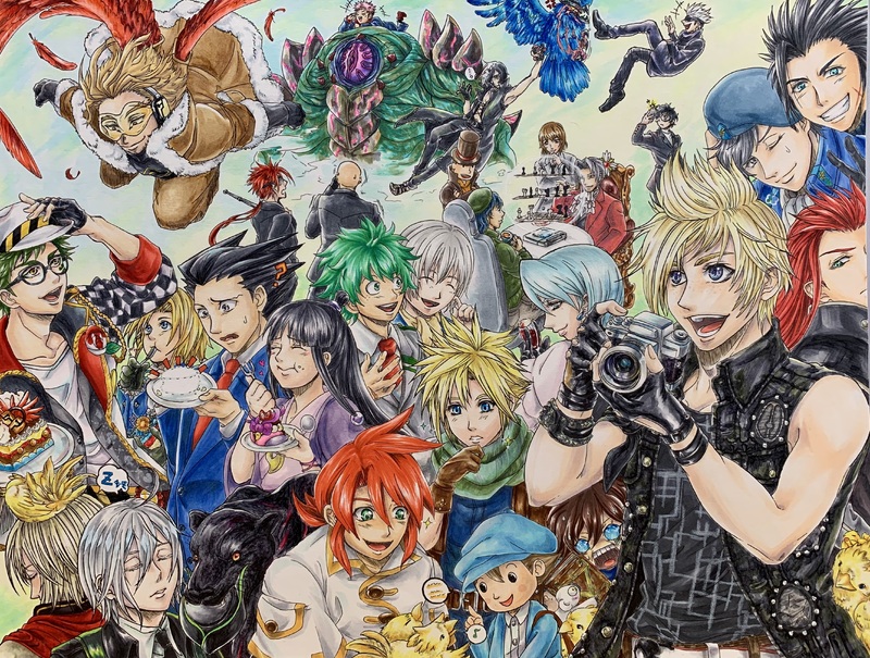 とある記念で、自分の今まで好きになった作品やキャラ達をごちゃごちゃ描こうというやつ。
