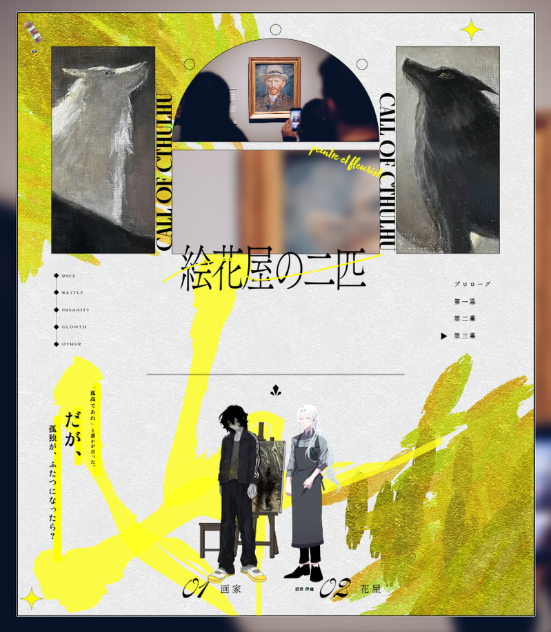 norishio_TRPG☆quiet followDOODLE【CoCシナリオ】絵花屋の二匹*****敬称略*****作者♦おにくKP♦さとみHO1♦根来 天狼♦0831HO2♦初宮 伊織♦のりしおEND▶D-両生還- Tap to full screen (size:828x950).Repost is prohibited Let's send reactions! freqpopularsnackothersPayment processing Replies from the creator Follow creator you care about!☆quiet follow norishio_TRPGDOODLE【CoCシナリオ】無題*********** 敬称略 *************作:タナカKP:のりしおPL:やまなか たろ(大海一滴)END>2生還おめでとう!!エロ本の話しかもう覚えてません norishio_TRPGDOODLE【CoCシナリオ】同じ空には昇れない。************* 敬称略 **************作:多箱屋商会KP/いね☀️HO太陽/PL鮫津釧/のりしお🌙HO月/PL飛倉/マチオEND>d-3 両ロスト************************************これも1つの幸せの形 norishio_TRPGDOODLEおなそらげんみ❌ 4 norishio_TRPGDOODLE【CoCシナリオ】████が消えた夏********** 敬称略 ************作:むつーKP:真夏PC/PL瀬戸 嵐/のりしお夏凪 渚/はむがき夏始まったどーーsince2025.07.15〜07.19がき夏終わったどー!!楽しかったし夏凪渚に勝ちました✌️さすがにPLも瀬戸嵐はモテると思った norishio_TRPGDOODLE【CoCシナリオ】静なるテロリスタ-----------------敬称略--------------------作:霧島ジャックKP:翠HO:PC/PLHO童子:相良智秋/紫陽花HO篤学者:筧 悠衣/のりしおHO美術家:畠中 錫/0831HO異邦人:アズハル・アーナダルム(メジフーラ)/真夏END▷TRUE END 全生還長い旅路だったけど最高に楽しかった!!! 2 norishio_TRPGDOODLEあくほほげんみ✕【CoCシナリオ】蟹蟹詐欺********敬称略**********作:堀KP:たろPC/PL天野束心/fumiaki!久司璃/のりしおEND▷生還皆なかよく あくほほ自陣(どうしてそうなった?) recommended works qinglin213DONE一个人出门太危险了,带上这个吧 大遅刻DOODLE※痛そうな沢がいますやりたかったものやっと描けました🐤 2 よも乎DONE寝ウパー 遠藤/endohREHABILI霊律営業終了後のおたのしみ mochoDONEkiisサクカの全体図です! ちゃーみーDOODLE12月前半落書き🎀🕊️キャラクターのビジュアルは自己解釈あり。 11 miso_shiru39DOODLE蘭光自分が抱く側だと思ってた光秀 不毛鸡腿DOODLE りくり@🔥🎴PROGRESSWebイベント開催おめでとうございます🎉展示予定だった11ページのショート漫画体調不良や多忙で間に合わず😭ので、せめてでもと思いまして5ページまで、線画と背景のみですが公開します🙇🏻♀️後半6ページに私が今回この漫画でやりたかったこと凝縮してるので、なんとか今年中にあげたい!完成は🦋とXにてお知らせいたしますー🙏🏻こんなとこで終わんな!のクレームはなしで(笑) 5