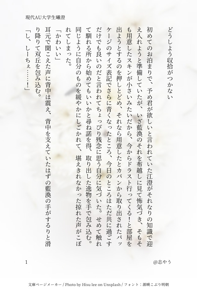 shiyou_tama☆quiet followMOURNING #曦澄 show all(+1 images) Tap to full screen (size:630x928).Repost is prohibited Let's send reactions! freqpopularsnackothersPayment processing Replies from the creator Follow creator you care about!☆quiet follow shiyou_tamaMOURNING 2 related works yaji1_mdDONESMhttps://poipiku.com/5280290/7208921.htmlの続き*SMの話*R-18 成人済みの方のみどうぞ*若干のモブ(女)要素あり*現代 1848 yunoDONE江澄を喜ばせよう企画。曦→澄のつもり。閉関した江澄が犬と戯れてます。最初はギャグのつもりだったんですが、着地点を失敗しました。2023/01/28 01:36 up 2880 yaji1_mdDONESMhttps://poipiku.com/5280290/7208921.htmlの続き*SMの話*R-18 成人済みの方のみどうぞ*若干のモブ(女)要素あり*現代1プレイ目(ソフト) 5653 tia_10l0DONE「春の気まぐれ」フォロワーさんの誕生日に捧げた曦澄SSです。 6 takami180PROGRESS長編曦澄17兄上、頑丈(いったん終わり) 1337 takami180PROGRESS恋綴3-5(旧続々長編曦澄)月はまだ出ない夜 1437 takami180PROGRESS恋綴3-2(旧続々長編曦澄)転んでもただでは起きない兄上 3050 yaji1_mdDONESMhttps://poipiku.com/5280290/7208921.htmlの続き*SMのはなし*R-18 成人済みの方のみどうぞ*若干のモブ(女)要素あり*現代 2571 yaji1_mdDONESM先日ツイートした『Mの自覚がある晩吟君がSMのお店でオーナーの曦臣と出会う話』です。短く区切っていくつか続けるつもりの話です。*SMの話なのでR-18 成人済みの方のみご覧ください*若干のモブ(女)要素があります*現代*SMの話です 2565