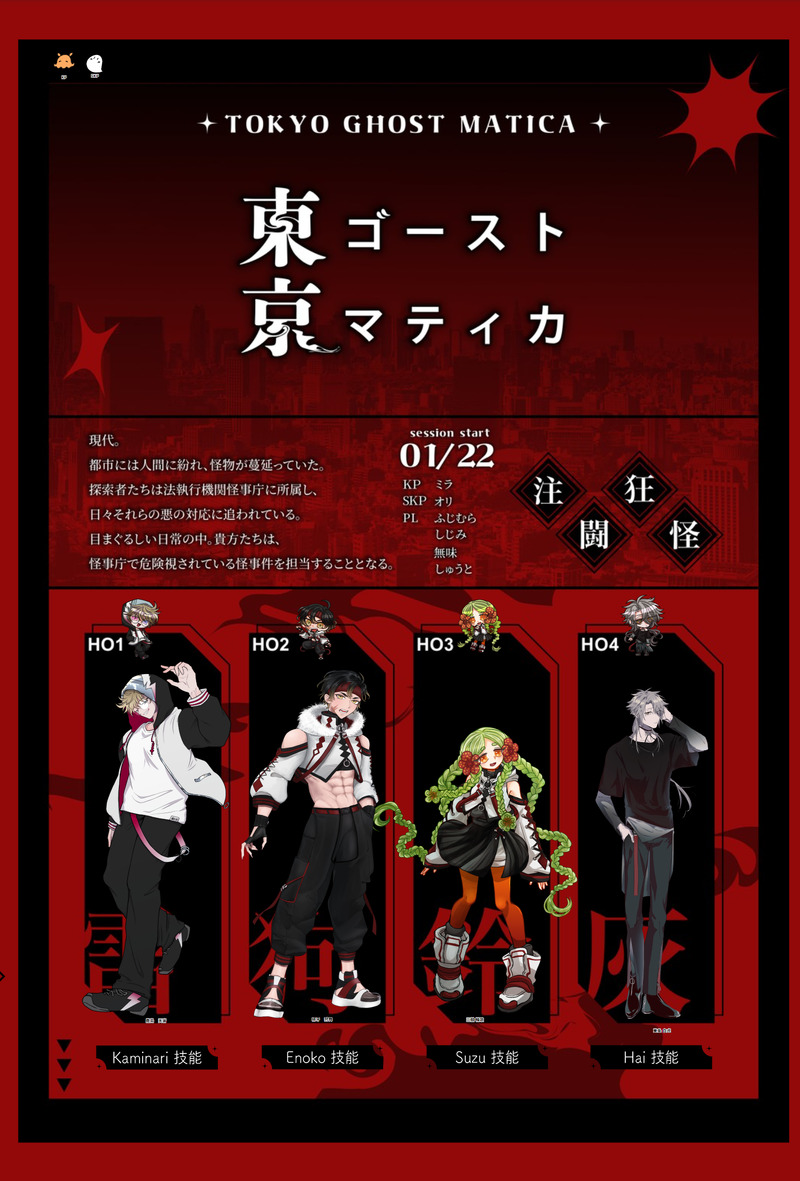 shijimi_pkmr☆こそフォロできたCoC「東京ゴーストマティカ」 すべて表示(+1枚) タップで全画面(原寸:1656x2446)無断転載禁止 リアクションをたくさん送って応援しよう! よく使う人気おやつその他支払処理中 作者からのリプライ 気になる人をどんどんフォローしよう!☆こそフォロ shijimi_pkmrできたCoC「ぼくらのシャングリラ、あの子のほうき星」 shijimi_pkmrできたCoC「東京ゴーストマティカ」 2 shijimi_pkmrできたCoC「毒花と紅茶」レプ葬継続 shijimi_pkmrできたCoC「キスと撃鉄」プルデス継続 shijimi_pkmrできたCoC「ジムに行こう!」プルデス継続 shijimi_pkmrできたCoC「同じ空には昇れない。」8陣 おすすめ作品 しゅうわ過去のを晒す看板娘と愉快な仲間達(笑) 60 あまなんできた白井秋葉 新立ち絵 8 ぺそやまできたかいこ〜〜〜〜のPC改め、朱 荷花(ちゅー ふーほわ)と、朱 月季(ちゅー ゆえちー)がCoCに登場!!!!!! 2 name1ほぼ白紙アリス創作の立ち絵まとめ 7 塔 睦穂できた【銀剣のステラナイツ】エリック-ステラドレスこっちは原寸大!でかでかのでかよ10/18 戦闘不能と中傷差分を追加 3 naro_cocできた一尺二寸五分三門 なんぽこ用立ち絵 4 にゃんたろすできたTRPGの立ち絵中華猫娘 使う予定がない TRPG1818できたヤドリギ 秋 2 アナログ絵とツイッター自主練スーツ × 立ち絵 × スニーカー