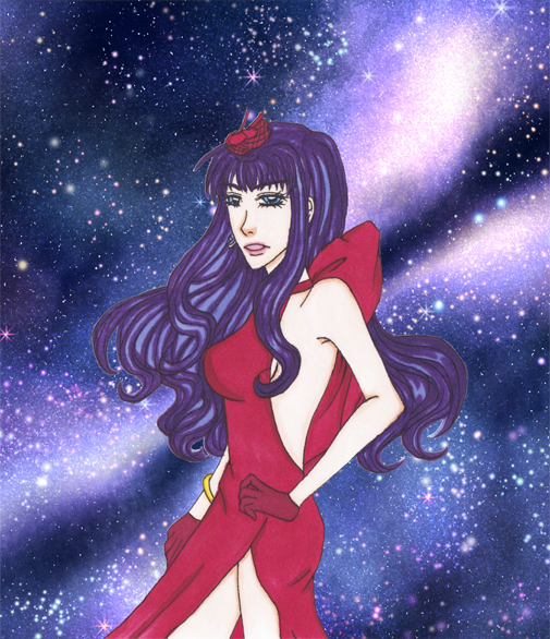 昔描いてた下絵やっと塗れました。このドレスで紫髪のシェリル好き。ライオン衣装の胸元最高└( 'ω' )┘