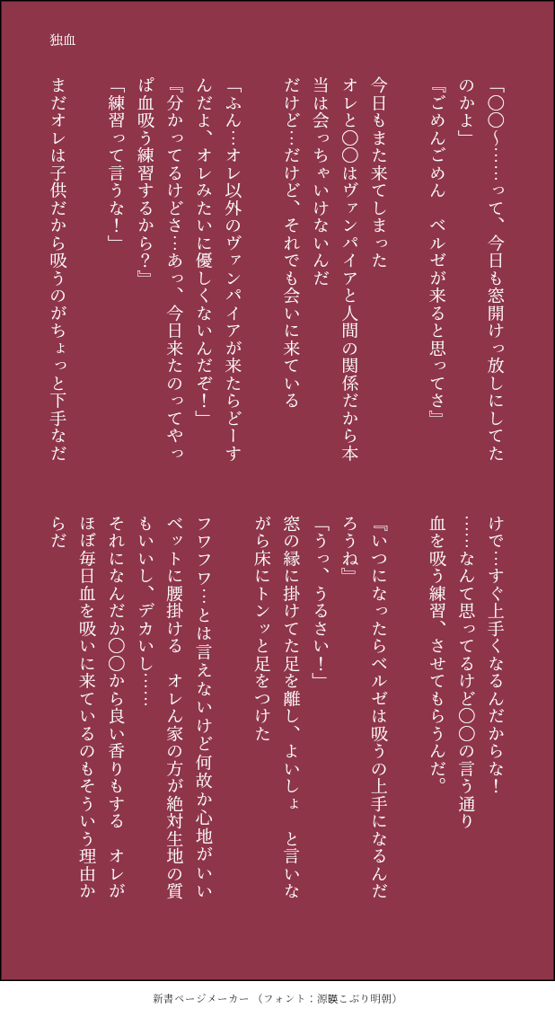💛🌷☆quiet followDONE独血 ベルゼ夢https://twitter.com/yumesaikou666/status/1714312119460811058?t=lg49vYCX5Dy-A5BFixLGLQ&s=19⤴こちらの吸血鬼パロ絵がきっかけで書いてみました 元ネタのツイート見なくても多分大丈夫だと思います※文字書きド下手奴が書いてる※パロ、設定つけ加え※夢主が喋る※夢小説 show all(+4 images) Tap to full screen (size:618x1132).Repost is prohibited Let's send reactions! freqpopularsnackothersPayment processing Replies from the creator Follow creator you care about!☆quiet follow 💛🌷DOODLE🤖夢⚠固定夢主⚠舌/打/ち 曲パロ 5 💛🌷DOODLE🤖夢⚠固定夢主!!⚠描き貯めておいたやつを放出 誰この女って思いながら描いてました(難儀やな……)画像2枚追加(2025/07/21) 8 💛🌷DOODLE🤖夢 キスの日漫画しっくり来なくて載せるつもり無かったんですが、せっかく描いたし…マインドで載せちゃいます 6 💛🌷DOODLE🤖夢https://x.com/yumesaikou666/status/1913189736069709890?s=61←このツイートの続き的な夢絵です※描きたい所だけ※とてもrkgk※ちゅーしまくってます 2 💛🌷DOODLE🤖夢捏造に捏造を重ねた猫の日の夢絵 勢いだけで描いたのでめちゃくちゃ雑です(すみません) 3 💛🌷DOODLE🤖夢ロボは呼吸なんかしないもんね 息継ぎとか必要ないもんね の、夢漫画 キスしてます 3 recommended works cfmDOODLEblade+yingxing🐇cuntboy 2 犬サ田DOODLE50万人おめでとうございます!まさかそんな顔するとは FASTYDONE🔥🎄SATOGOH CHRISTMAS🎄🔥 mahatatatata_29MEMO▍𝐂𝐚𝐥𝐥 𝐨𝐟 𝐂𝐭𝐡𝐮𝐥𝐡𝐮 «もし、明日がくるなら»𝗣𝗖/𝗣𝗟:夏目 虹/梨木カルテ 早守 愛都/まはた➤両生還 シナリオクリア2024.12.25 葡萄汽水甜年年DONE 4716 Hey^O^DONE场千冬季甜蜜小日常。bjfy冬の甘い日常。 2362 ハナハッカDOODLE犬に見えてるやつ tumu-DOODLE余りにも上げてないのでサブ垢で上げてた落書き四三少しだけ上げます〜🫶 3 鬼束仁(オニ)DOODLE花のゼンタングル