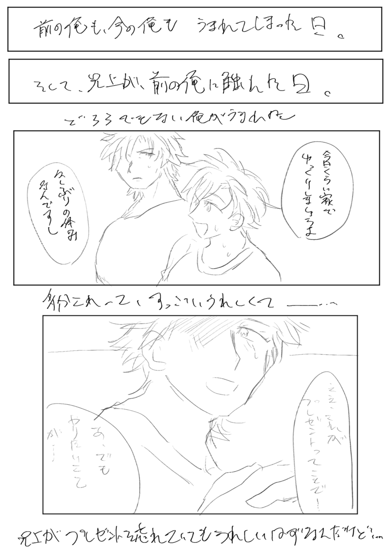 まの絵☆quiet followCAN’T MAKEやりたいことがとっちらかって没にしたやつです現パロ弟のみ記憶ありゴーティエ兄弟リバ描写あり #ふうか efflorescence show all(+4 images) Tap to full screen (size:1400x2000).Repost is prohibited Let's send reactions! freqpopularsnackothersPayment processing Replies from the creator Follow creator you care about!☆quiet follow まの絵SPUR ME まの絵DOODLE女体化朔良が芹の下着をよく借りるので上下で所有者が違う現象が起きる朔良が自分が履いてる下着を売ってて嘘だろ!?まさか売ったりしないよな!?ってつっこむ芹、しないの!?って顔の朔良(よくないよ) まの絵DOODLE風花中心の表に上げてなかった気がする絵CPごった煮(ランロド、シルメル、レトギル、メルシルなど)モブが相手のものもあります 30 まの絵DOODLE〆女体化でド◯ームクラブパロした過去絵が出てきたのでまとめました※プルソンくんが巨乳です※2枚目のバルバルとイポスさんはおそらく女装です 4 まの絵DOODLE122話・6のレアム怒りの処理の仕方が分からなくてとにかく大声出してる感じがしんどくて大好きで、悲しかった。。 3 まの絵MEMOアパシー鳴上学園七不思議の長臣俊之のことを考えるのがやめられなくて困っている。彼の感情は支離滅裂で本物の狂気で常人には経験しようも無いのにどんなこと考えてるんだろうと思わずにはいられない。誰かと話し合ってこのキャラのこと掘り下げたい。苦しい。 5 related works まの絵DOODLEごーてぃえ 3 まの絵PROGRESS世界で一番進まないネーム一、二枚目表紙案 一枚目になるかも、いやまだ変わるかもしれない 4 まの絵DOODLEFEHアクセネタ シルとドゥ まの絵DONE付け毛殿下🎀と髪下しドゥドゥー🎀 まの絵PROGRESSした まの絵PROGRESS まの絵DOODLEふうかのらくがきまとめですいつも通りらんろどとかしるどぅとかごてぃえ兄弟とか色々今回そんなすけべないけど一応制限かけました 49 まの絵MEMO現パロのごーてぃえ兄弟のプロット的なもの弟が押せ押せです 次の本になるかもならないかもしれない 1050 まの絵DOODLE一番最近描いたっぽい兄上 ハロウィン??がっつり女装してます recommended works まの絵DOODLE 3 まの絵PROGRESSここかわいい(自画自賛)いつまで幼少期の二人を描いてるんだ私は………… ましまろMOURNINGえねまぐら放置ぷれいまんがです。続くかは未定※デスけL月 2 tottokopoupouDOODLE出勝♀「コンプレックスラプウぺ」pixivよりも長めにサンプル公開しました!沢山刷ったので読んでいただけましたら本当に嬉しいです!通販中です!https://ec.toranoana.jp/joshi_r/ec/item/040031103589/ 26 AirrrShippyMEMO《倦鸟归巢》*凪玲哨向 有私设 S级哨兵xA级向导*狙击手x战地记者兼红十字副会长 北极狼x狮子*精神疏导+身体高潮 内含些许强制情节 请注意避雷wb@网路砂糖小飞船18↑?(yes or no) 5122 WarmiiKhaenDOODLE4 @maaDONEえちゃタイムラプスhiyoさんにお誘いいただきました!とっても嬉しい!しかも貴重なシュナジュリ合作!ジュリの恍惚とした表情や指の骨張った影の塗りが好きすぎて…😇ありがとうございますまたぜひ遊んでください!🙏🥰 2 紫雲POI10359263DOODLE西園寺 雅姫(さいおんじ みやび)メモが長くなった。 2 もっちのお部屋DOODLEナンを見せつけてくるもっち。