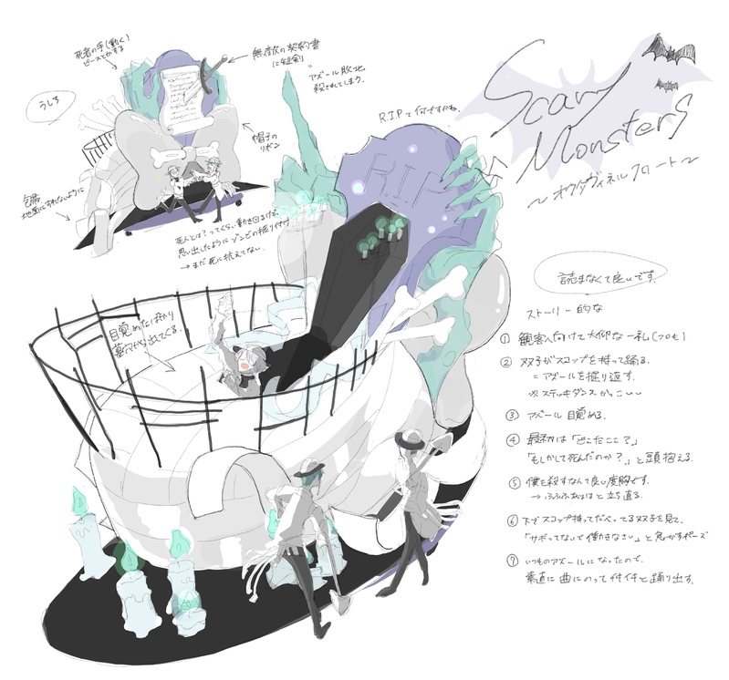左右対象シンクロする振付を踊る双子とか、ダンスの合間に目があったらウインクしてくれたり決めポーズしてくれる双子とか、カメラ向けたら片割れ呼んでくれる双子とか、左右のポジション入れ替わるときに手を取って一回転する双子とか、フロート上のアズにちょっかい出して、「お仕事なさい(踊りなさい)」と言われる双子とか、スコップをステッキがわりにするふt…