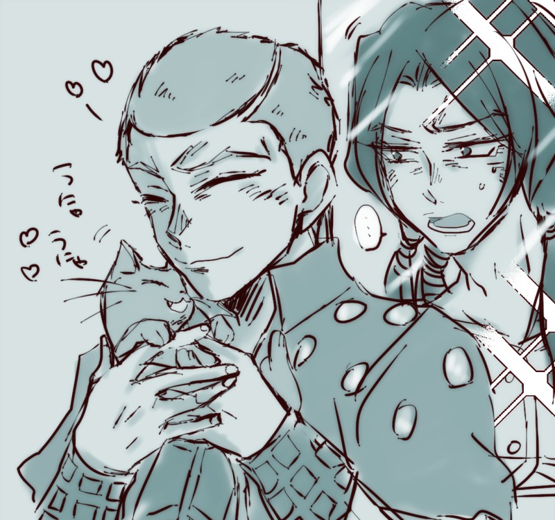 猫とか犬好きだとかわいいなあって思ってたまんなくなって描いたホルマジオ(とイルーゾォ)