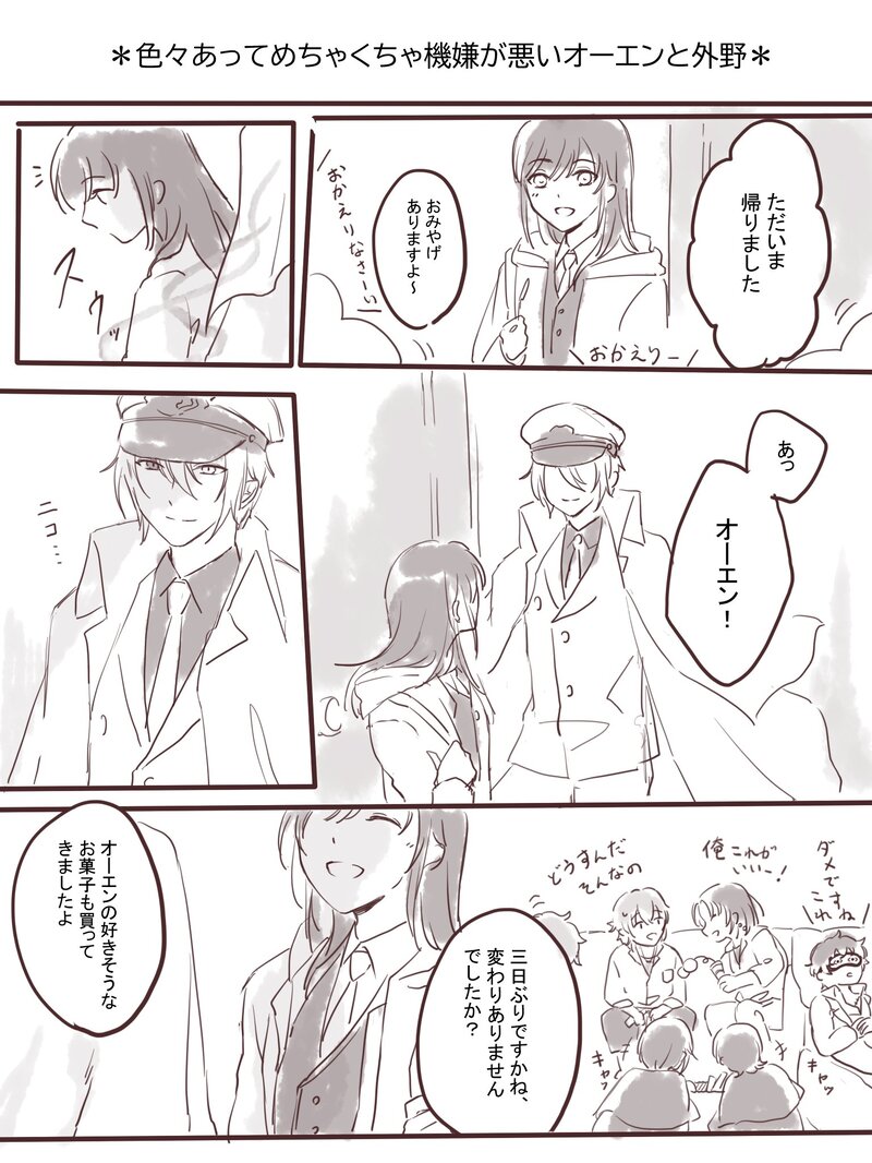 クソほど機嫌が悪い時のおあきのオエと外野の話です。多分付き合ってますがおあきは会話してない…おあきがおあきする前に終わります。passはずしましたー!