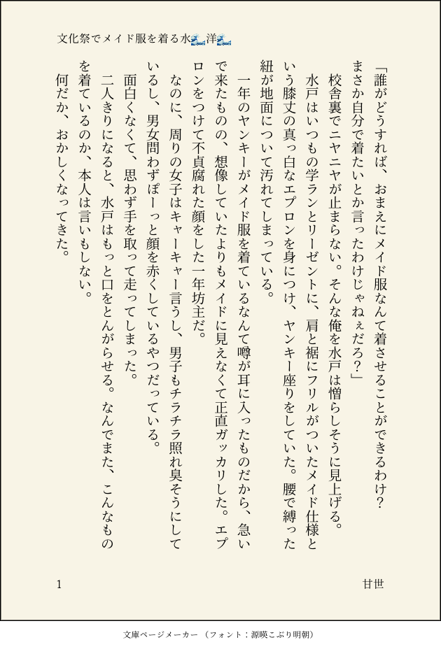 甘世(かんせ)☆quiet followDONE文化祭でメイド服を着る水🌊洋🌊#みと恋R #みと恋Rお題箱リョ洋です。すぐに青春キラっちゃう show all(+1 images) Tap to full screen (size:630x928).Repost is prohibited Let's send reactions! freqpopularsnackothersPayment processing Replies from the creator Follow creator you care about!☆quiet follow 甘世(かんせ)DONE彼氏に好き好き言われて照れまくる水🌊洋🌊#リョ洋 #みと恋R #みと恋Rお題箱すぐにいちゃついてしまう 2 甘世(かんせ)DONEタイムトラベルして過去に戻る年の差リョ洋の話です。原作から25年後、タイムワープできる世界から42歳のリョが人生の転機となった17歳の自分に会いに行ったところ、自分ではなく16歳の洋と出会うという話。今回アップする話には前段があって、それ込みで23-25再録本に収録予定です。 4 甘世(かんせ)DONE文化祭でメイド服を着る水🌊洋🌊#みと恋R #みと恋Rお題箱リョ洋です。すぐに青春キラっちゃう 2 甘世(かんせ)DONEリョ洋です。リョのゆびふぇ。前回の後日談です。誰が来るか分からない体育館で、ヤキモチからゆびふぇさせる洋。途中からリョのことえろいなあみたいな、すけ…べな気持ちでいますが、最後のセリフは、ここでしてって意味ではないですたぶん 4 甘世(かんせ)DONEリョ目線なので洋を可愛い可愛い言ってるうえに、カッコつけのビビリなとこは変わらないリョと、色々やって感じやすくなった洋との、20代リョ洋です。付き合ってないです。 6 甘世(かんせ)DONEリョ洋です洋のゆびふぇ。相手の体に触るときはリョは色々だけど、洋はえっっのことが常に頭にある、ムッツリさんだといいね 3 related works 甘世(かんせ)DONE彼氏に好き好き言われて照れまくる水🌊洋🌊#リョ洋 #みと恋R #みと恋Rお題箱すぐにいちゃついてしまう 2 ym_mikazukiDOODLEみと恋Rお題箱より、流行りの歌を口ずさむ水🌊洋🌊三洋・リョ洋・流洋愛されなのでCP要素薄 ym_mikazukiDOODLEみと恋Rお題箱より、人の考えていることが見えるようになった水🌊洋🌊②事実や結果じゃなく 「ちゃんとした男になりたい」って自己肯定を必死に積み上げて生きてるリョータ。・・・をなんとなーく分かってるんじゃないかな?という洋平。洋平愛されのつもりですがちょっと贔屓めに💦 ym_mikazukiDOODLEみと恋Rお題箱より、人の考えていることが見えるようになった水🌊洋🌊①この三井は洋平好きだけど言えず卒業する…そこが三洋切ない。だって過去と自意識の塊の男⭐︎愛されのつもりで描いてるので、何も起こらなくてすいません😭 甘世(かんせ)DONE文化祭でメイド服を着る水🌊洋🌊#みと恋R #みと恋Rお題箱リョ洋です。すぐに青春キラっちゃう 2 recommended works sgr_rkgkDOODLE笠パクしてはしゃぐ⌛️ 微⌛️☂️? #sethoscara sunset_rootPROGRESSオンリーに添えて。日曜までに書き終わったら褒めてください。リョ洋です。PASSはオンリーのサークルページに書いてあります。 8910 玖珠-kusu-DOODLE2025-0222 KotakotoDONE銀高獣姦Webオンリー「ケモノでけっこう♡」開催おめでとうございます👏「ネコ杉さんの痴態」編 2 しどめDOODLEツイッターのr-18版オシュロルの走り書きぱす yes 3256 mocha_chan3DONE九龍城砦絵。龍捲風推しだけ皆んな好きだよ。 4 邪恶围棋姐DOODLE又惦记那个大奶血河了 mariya0624PROGRESS興奮 🌷誘🌷DOODLEバレも何も無い己の四季送り冬落書き治安の悪い四季送り見たいよ、わたし気に障る事言って普段ふわ〜な者から殺すぞ(直)されたいの