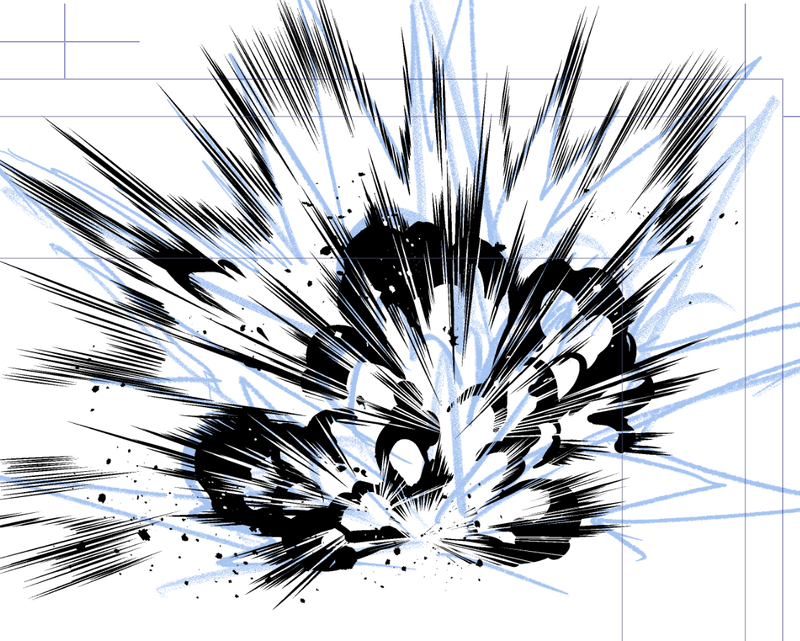 上手い人のを参考にして爆発かいてみた。あとは銃魔神族の武器作った。2枚進んだので良い方かな。〆が結構無謀…