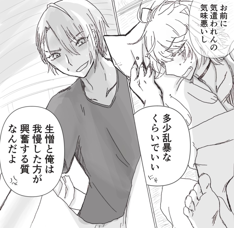 mnmna_tukn☆quiet followDOODLE優しくしなくていいよ♡って言ってくれるにゃくんと「は???????意地でも優しくするが???????砂糖で煮詰めて原型なくなるまで溶かしてやろうか?????」とまともな言い訳を考える気が一切ない長義くんあとこの前の一コマ漫画の解答例 show all(+1 images) Tap to full screen (size:1296x1264).Repost is prohibited Let's send reactions! freqpopularsnackothersPayment processing Replies from the creator Follow creator you care about!☆quiet follow mnmna_tuknMEMO⚠️先天性女体化ちょぎ♀にゃん♀にょた百合作品として書く機会はなさそうだけどうっすら設定だけまとめていく女体化は性格を変えずに自認を女の子にしたときにどういう好みどういう反応になるかの思考実験として好き単萌え的な楽しみ方だけど、カプにするときは対等厨こじらせて百合にするエロはないけどスケベな話は少ししてる大体横に普通の男性体ちょぎにゃんもいる 3534 mnmna_tuknMOURNING二人遠征で山奥の村に行ったちょにゃ(ギリ付き合ってる)が土着信仰により肥大化した土地神の祟りを避けるために恥ずかしいプレイをする羽目になるという淫習村ネタ 3490 mnmna_tuknPROGRESS可愛くならなくてずっと絶望してるんだけどとうとう完成まで可愛くならなかった mnmna_tuknDOODLEショタにゃくんをギャンギャン泣かせてほしいけど倫理観的に無理だ……と思ったので自分的にセーフな要素をぶち込んでいった結果倫理観がマイナスになった。セーフティ模索↓・刀剣男士の長義くんはショタ化南泉くんに手を出さない→現パロ幼馴染の長義くんなら「一緒に育った」時間があるのでいける・完全な現パロの場合普通に子供に手を出していることになり問題が発生→やはり刀剣男士(人外)設定でなくては…… 2816 mnmna_tuknMEMOサークルカット差し替え完了🙃(まだ脱稿しておらずせっかくもらった表紙絵お披露目できてない負い目からポイピク)バチかっけえ表紙描いてもらったよ mnmna_tuknDOODLEバレンタインポスト2022まとめはっぴ〜〜〜〜なチョコレートありがとうございました〜〜〜〜〜 19
