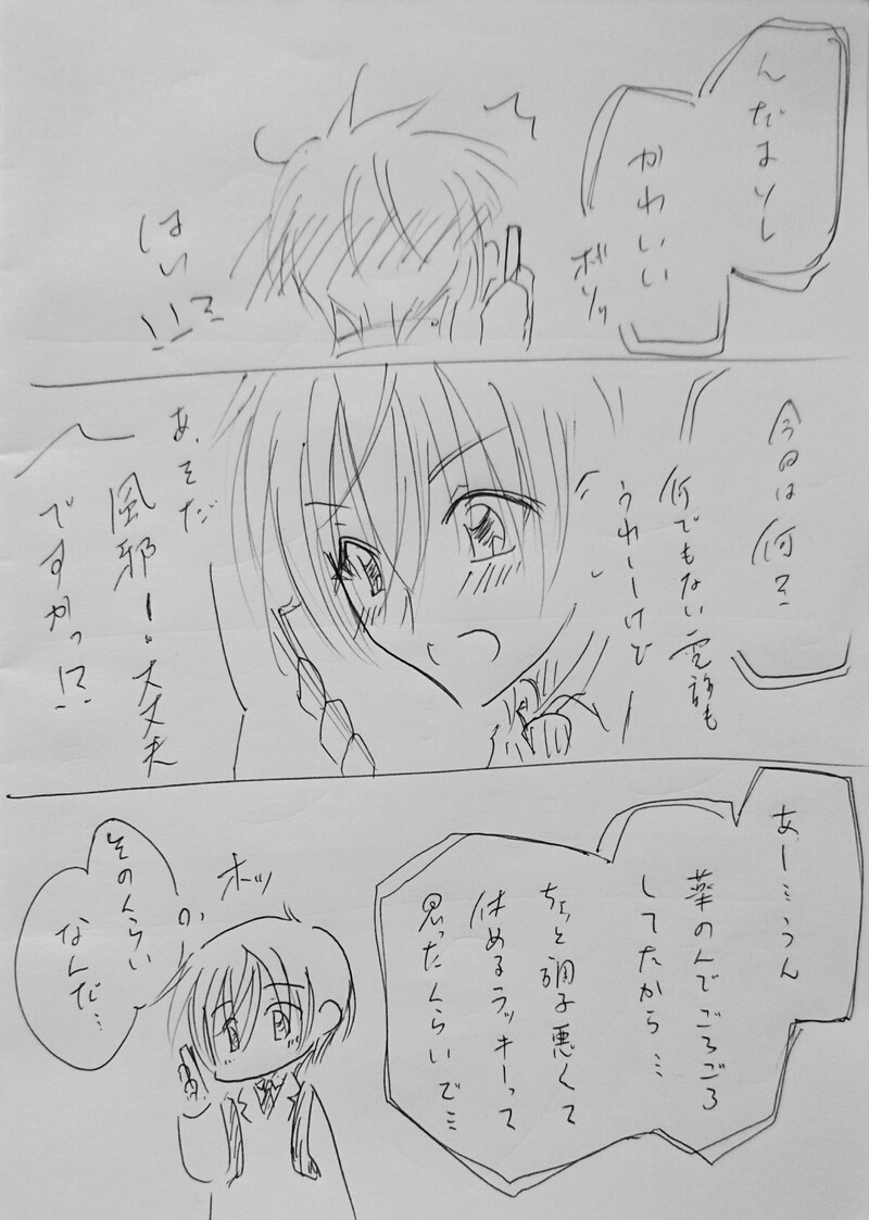 (書いてる本人じゃないと分からない程度のことなんだろうけど(もとももすごい落書きだし)、昨日過去の自分の絵見てただけで、手ぐせが過去絵に寄った……というか、別のキャラすらすらと書きかけたorz)