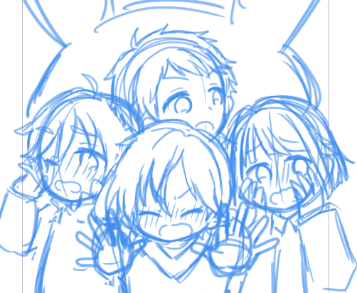 らびっつ+他キャラ全員にょた本、絶対にあると思ってたのに見当たらないから描き始めたけど難しい。