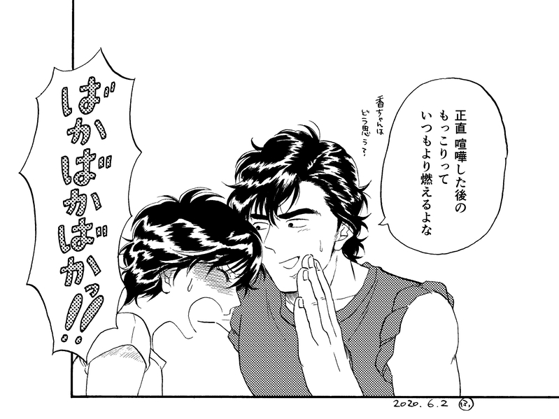 そんで子供みたいな喧嘩した後にぎこちなく仲直りする2人を妄想すると楽しいです。もちろんもっこりに雪崩れ込んで有耶無耶にするズルい冴羽さんでも、「ごめんね…?」って謝る香ちゃんでも!