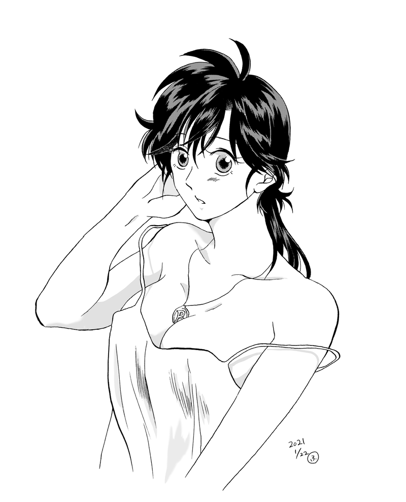 お互いのイニシャルがついたネックレスを交換して着けてたらいいな~って妄想してたら香ちゃんの胸の間にネックレスが挟まってる絵が思い浮かんで描きたくなったのでした。
