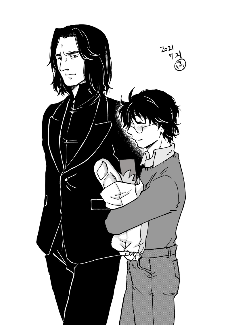 マグルの世界で買い物中の2人みたいな…そしてハリーを見つめるモブマグルを牽制する先生みたいなみたいな