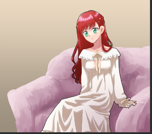 ソファをどうやって描いたらいいかわからない😂ソファと背景をどうにか整えて、グラデーションマップかけて、トリミングして終わりにする!人物もだけど人物以外の描けなさも要練習ですね!