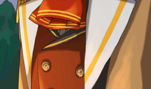 襟のピン?描くの面倒で後回しにしすぎです!!!舞台の方の衣装ではピンが小さいことに気づいたので、そういうことにして小さく描いてOKということにしていいかな!