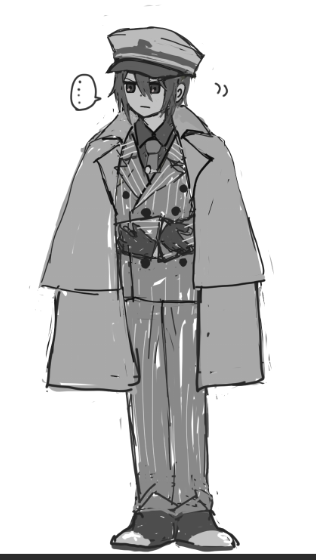 こんな感じでいいかな?落書き風なので……その割に登場高いような気がするけど、うーん。5頭身くらいのも描いてみるかな?あとズボンの裾が短いので直す!
