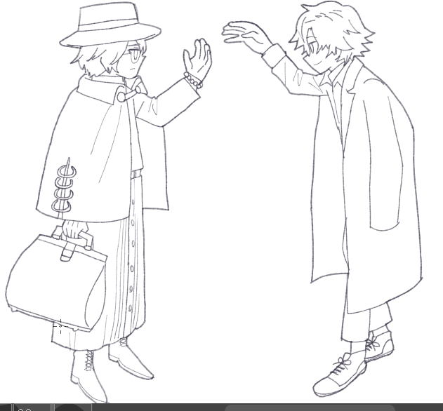 早く描き終わりたくて慌てた結果、ファウストのスカーフ?とフィガロの聴診器を忘れて線画を進めてしまいました!!