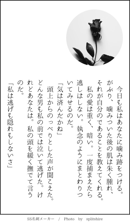saya_wl☆quiet followDONE[SS]貴方はビショルキで『受け止めてくれるのはあなただけ』をお題にして140文字SSを書いてください。#shindanmakerhttps://t.co/gnBTAhVTAw##さやSS幻覚ルーキーの性別はどっちでも Tap to full screen (size:550x950).Repost is prohibited Let's send reactions! freqpopularsnackothersPayment processing Replies from the creator Follow creator you care about!☆quiet follow saya_wlDONE[SS] チェンショップビショップさんが好きなチェンシーてゃん#さやSS幻覚 4 saya_wlDONE[SS]知りたい、知りたい、ただ知りたい(1/2)ビショルキ(ビショップ×一般ルーキー)彼らが付き合う話です。ルーキー若干メンヘラですフニャチンイベント後の話です #さやSS幻覚 8 saya_wlDONE[SS]もしかしたらあったかもしれないいくつかのこと(1/2)チェンショップ。ビショップさんがプロポーズします。■■■はビショップさんの本名だと思ってください。#さやSS幻覚 5 saya_wlDONE[SS]ディアンシー ディアブロ×チェンシーディアブロくんが妬く話#さやSS幻覚 2 saya_wlDONE[SS]チェンショップ(1/2)これもまたWebサイトにあげたものです。つき合ってない二人だったが…しほさんのクリスマスイブ夢の続きです#さやSS幻覚 3 saya_wlDONE[SS]チェン+ビショWebサイトにあげたものです。二人はつきあっていません#さやSS幻覚 3 related works SasameREHABILIあなたは細雪んちの獠香で【噛んで微笑ってもう一度キス / あれは嘘だった】をお題にして140字SSを書いてください。#shindanmakerhttps://t.co/FT9UR8u5Hs『血の証』を見た獠ちんからクレームがありまして「書き直せ!!」と言われちまったよ…(*꒦ິ꒳꒦ີ*)獠ちんが悪いんじゃん!! こよみTRAININGこよみんちの獠と香で「バスタイム」と「モーニングキス」のお話はどうでしょう? 1ツイート(140字)以下だと嬉しいですっ!#CHしたったー #shindanmakerhttps://shindanmaker.com/965157ギャグ路線?😅お題の言葉は直接は使ってない😅直接表現はしてないので、全年齢。 かほる(輝海)DONEシティーハンター冴羽獠×槇村香原作以上の関係あなたはかほるさんちの香ちゃんで【癖になるかも / 行儀の悪さは艶やかさ】をお題にして140字SSを書いてください。#shindanmakerhttps://shindanmaker.com/780366これはお行儀が悪い方が萌える(*´艸`*) かほる(輝海)DONEシティーハンター冴羽獠×槇村香原作以上の関係書き手募集していたのでびんじょった(*´ω`*)Rさま(@ryu_wen)ありがとうございました!Rんちの冴羽くんと香で「唇」と「「ばぁか」」のお話はどうでしょう? 1ツイート(140字)程度だと嬉しいですっ!#CHしたったー #shindanmakerhttps://t.co/2IQJRYQwf0 aosabikinakoTRAINING貴方はハル相で『最大級の口説き文句』をお題にして140文字SSを書いてください。#shindanmakerhttps://shindanmaker.com/375517 かほる(輝海)DONEシティーハンター冴羽獠×槇村香原作以上の関係かほるさんちの香で「生きる」と「地獄」のお話はどうでしょう? 5ツイート(700字)以下だと嬉しいですっ!#CHしたったー #shindanmakerhttps://shindanmaker.com/965157何か暗い感じになっちゃったけど、これで許して…(´・ω・`)この後は二人で天国へ行った(イッた?)に違いない(*´艸`*) 2 opinel432DONETSりんわかBLさんは『もしかして誘ってる?』をお題に、140字でSSを書いてください。#shindanmakerhttps://shindanmaker.com/320966 SasameREHABILIあなたは細雪んちの獠香で【噛んで微笑ってもう一度キス / あれは嘘だった】をお題にして140字SSを書いてください。#shindanmakerhttps://t.co/FT9UR8u5Hs過去最短で書いた気がする( *¯ ꒳¯*)フフン rick_underworldDONE貴方は🌹→☕️で『口説き落としてみせる、って』をお題にして140文字SSを書いてください。2022/12/13そう思っていたのに、#shindanmakerhttps://shindanmaker.com/587150