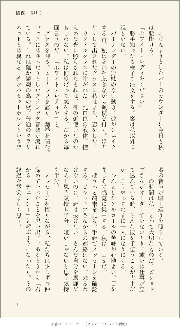 saya_wl☆quiet followDONE[SS]チェンショップ(ビショップさんとチェンシーちゃん闇夜に溶ける砂漠さんに飲み物が出てくる話の雰囲気が良い(意訳)といわれたので調子のりました#さやSS幻覚 show all(+3 images) Tap to full screen (size:618x1132).Repost is prohibited Let's send reactions! freqpopularsnackothersPayment processing Replies from the creator Follow creator you care about!☆quiet follow saya_wlDONE[SS] チェンショップビショップさんが好きなチェンシーてゃん#さやSS幻覚 4 saya_wlDONE[SS]知りたい、知りたい、ただ知りたい(1/2)ビショルキ(ビショップ×一般ルーキー)彼らが付き合う話です。ルーキー若干メンヘラですフニャチンイベント後の話です #さやSS幻覚 8 saya_wlDONE[SS]もしかしたらあったかもしれないいくつかのこと(1/2)チェンショップ。ビショップさんがプロポーズします。■■■はビショップさんの本名だと思ってください。#さやSS幻覚 5 saya_wlDONE[SS]ディアンシー ディアブロ×チェンシーディアブロくんが妬く話#さやSS幻覚 2 saya_wlDONE[SS]チェンショップ(1/2)これもまたWebサイトにあげたものです。つき合ってない二人だったが…しほさんのクリスマスイブ夢の続きです#さやSS幻覚 3 saya_wlDONE[SS]チェン+ビショWebサイトにあげたものです。二人はつきあっていません#さやSS幻覚 3 related works saya_wlDONE[SS]ジョニモブ自傷をする夢主。登場人物全員ひどいのとジョニ担は若干閲覧注意。#さやSS幻覚 2 saya_wlDONE[SS]ジョニー夢(ネームレス主人公)(ネームレスはキャラ名ではない)わかりにくいけど一応ジョニー夢。バレットワークスって有名だし傭兵に勝手に恋するがきんちょいると思うんですよね。#さやSS幻覚 saya_wlDONE[SS]チェンショップ永遠に火をつける(1/2)かつての同期と飲みに行ったチェンシーちゃん#さやSS幻覚 6 saya_wlDONE[SS]ディアンシー星を見るディアンシー。このシリーズ全ての自カプでやりたい#さやSS幻覚 2 saya_wlDONEジョニロットSS。致すまで。ヤってはないので一応全年齢。 6 saya_wlDONE[SS]ルキ←ジョニのジョニモブ前提。ルキはシャーロットではありません#さやSS幻覚 saya_wlDONE[SS]ディアンシー社畜チェンシーてゃん#さやSS幻覚 3 saya_wlDONEビショルキ(親子概念)SS。親子概念になるまでの話です。ビショップさんがルーキーを喫茶店に呼んで話をします。 グリルキ、チェンショップ要素あり 10 saya_wlDONE[SS]ペインキラー夢(ペインキラー+モブ)若い女とペインキラー。ペインキラーは「知って」います。#さやSS幻覚 2