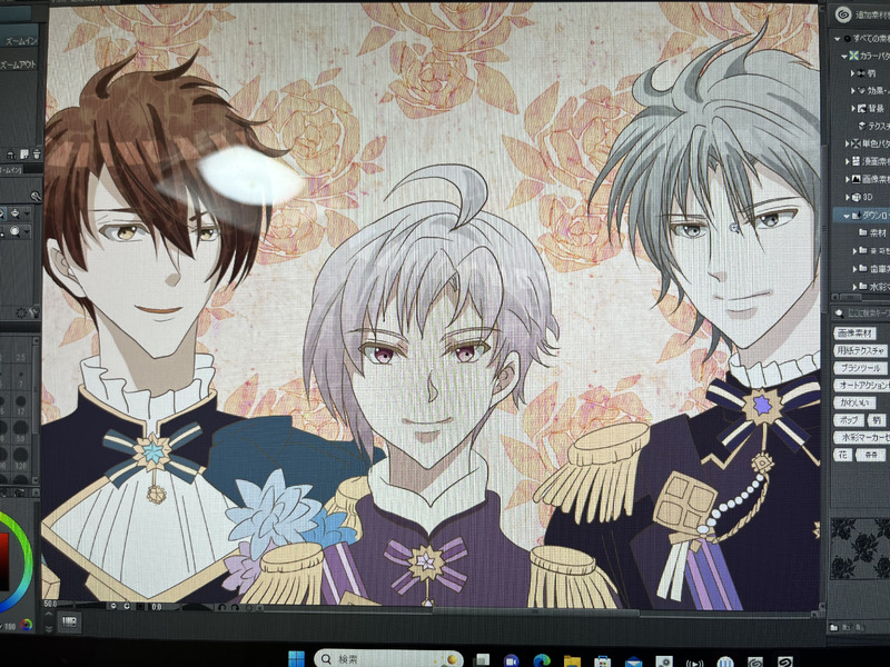 3人の全員の下塗りと、顔関係の影付け等。