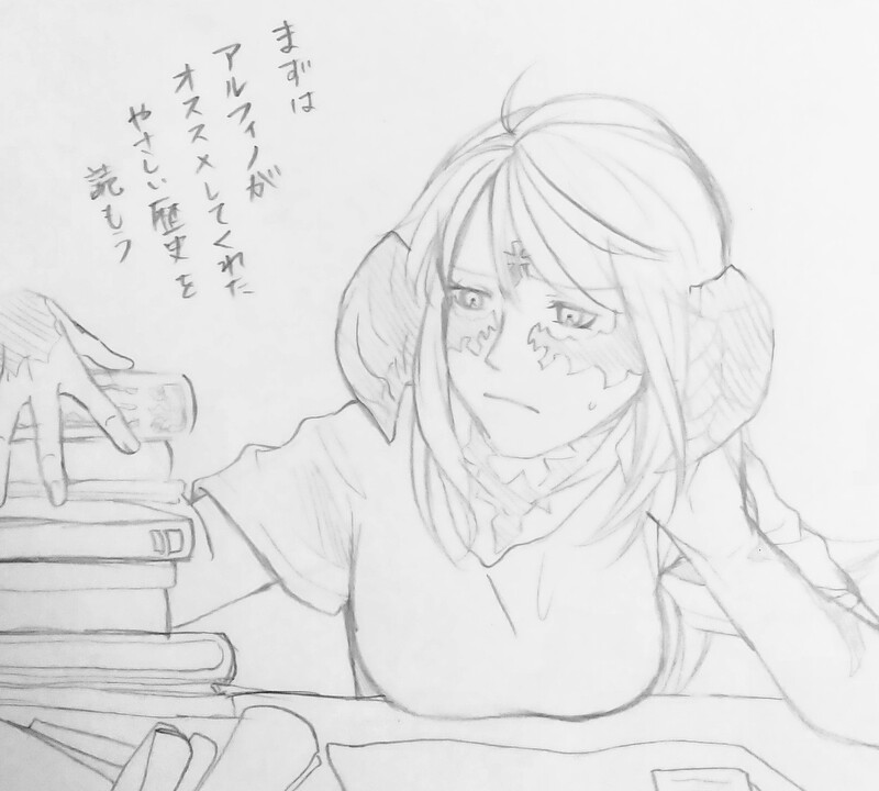 を知ろうと歴史書を借りたものの、難しい単語ばかりで頭を抱えるアウラ