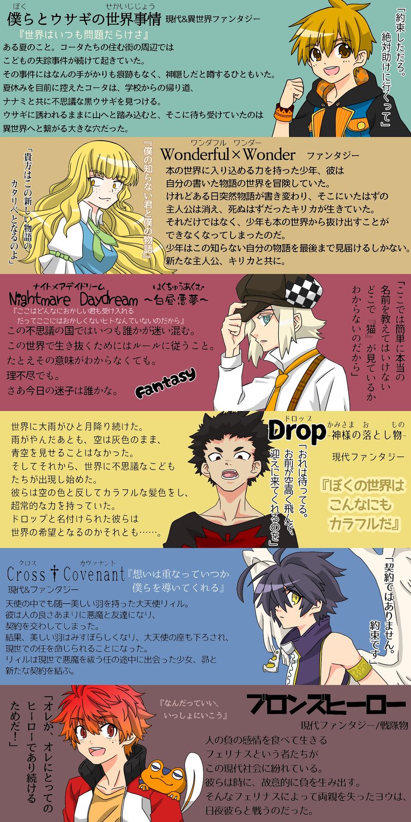三葉火壱☆quiet followDONE簡単自創作紹介 #一次創作 Original Creation #オリジナル original Tap to full screen (size:1500x3000).Repost is prohibited Let's send reactions! freqpopularsnackothersPayment processing Replies from the creator Follow creator you care about!☆quiet follow 三葉火壱DOODLE原神始めました。1枚目は魔神任務モンド編が終わった辺りのメインパーティー。タルタルさがして三千里。 3 三葉火壱DOODLEifな大河×クロ。ラフとらくがき。 9 三葉火壱DONE水彩練習 4 三葉火壱DOODLE例のあれ。 三葉火壱DONEお誕生日おめでとうしあわせになれ 三葉火壱DONEウミウシのような 2 related works From_六番PASTぽいぽい サブリミナル美MOURNINGヒヨッてコントラストよわよわ サブリミナル美MAIKINGメイキング?みたいなもの。 3 サブリミナル美MAIKING途中。色塗ると潰れそうだなあ、と不安を抱きーの、髪型が決まらねーの、な絵。 サブリミナル美PROGRESS「穏やかで知性のある奴は丈の長い服を着せて…」と思ったけどその固定概念どこからきたんだろ?露出激しくても特別なんとも思われない文化の世界だってあるかもしれないよなあ…?そういえば。下書き記事のコメント欄に描くことで、途中保存もできるようになったし、何よりスマホを横にするだけですぐ確認ができるようになったので私賢い(賢くない)終盤に気付く愚かさよ…。 サブリミナル美DONE線画だけのときの方が良かったので、完成カテゴリーに入れとこう。 🍨🍊DOODLE #創作 #オリジナル ##かふの創作 サブリミナル美PROGRESSどんどんイっちゃってる奴になってるけど、描いてて楽しいので仕方ないね(なくないね)ケーキ配達人は、出来上がりを想像して色を置いていく塗り方だったのに対し、こっちは影の上に肌色重ねてる。不健康そうな肌には便利なんだけど、単純にそう言う肌の色が想像できないんだよな…。不健康と色黒の肌色バリエーション作らねば。でも今はちょっとこの塗り方が面倒に感じるのは進歩かも。 サブリミナル美TRAINING頭の中で「横向いた睨む鬼を描きたいなあ」とざっくり考えてたので、落書きしてみた。アタリも下書きも無しでボーッとしながら描いたのに、楽しかったし迷いもなかった。意外と「描きたい!」と思ったら何も考えず描けば良いのかも?違うな、頭の中にちゃんとイメージすることが大事?うーんもう分からん。でも、手癖でも昔よりは描けるってことは、自分の引き出しは少しずつでも良くなってるのかな~。