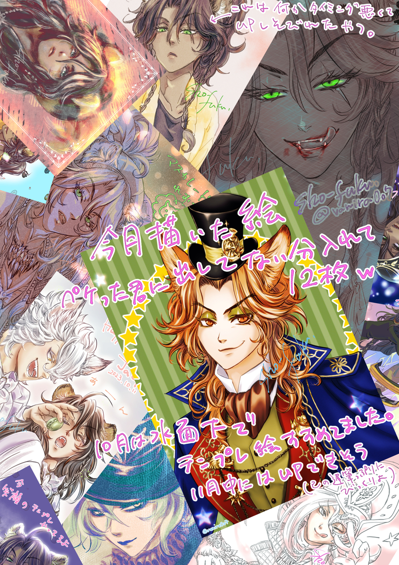 ・招福・☆quiet followDOODLE2023.101ヶ月分を一度にまとめるのちょっと疲れるからこまめにしとくわテンプレ以外のお絵描きしたやつTLが新イベでなんかザワザワしてて出し辛くてペケった君にupしそびれたポニテ🦁さん(なんとなくペケった君ってそういう時あるよね)その点タイツは気楽に出せるから良いわ☺️10月描いた絵とハロウィン絵(差分も)追加しました ##レオナ・キングスカラー ##イデア・シュラウド ##ジャミル・バイパー ##ジャック・ハウル show all(+8 images) Tap to full screen (size:1500x2121).Repost is prohibited ・招福・DOODLE2025年6月実際に描いたって言えるのは2.5枚だわね😂差分はメディバンの練習には丁度良かったと思う〜不便ながらこれでちょっと操作慣れてきた☺️ 5 ・招福・DOODLE2025年4〜5月あれ?まとめた気でいたけどやってなかった…😇 7 ・招福・PASTいいねの数だけ歴代の推しを晒すタグのやつ5/11いいねの数は6なので1枚にまとめたかったけどおっきく描いちゃったから入んなかったまずは1〜3推しね直近の推しから始めたけど、3以降は思いついた順になりますよい😋続きはまた後日描き終わったらupするね〜5/184〜6推し追加☺️https://x.com/vanira0o7/status/1919805121334284564 2 ・招福・DOODLE2025年2月&3月upするの忘れてたので3月のもまとめちゃった😂 7 ・招福・DOODLE2025年1月御年賀RTAと🐉誕と🐉🦁コミュニティにupした3枚前半は調子良かったけどダメだった〜😂色塗り端折ったお絵描きしかしてないからちゃんと色塗りしないと塗り方忘れそうだわ 4 ・招福・DOODLE2024年12月お友達のハピバ絵と舞ちゃんとタマムイ🦁さんと🎄🐉🦁描きたいものだけ描いた12月でした(通常営業)一昨年は一年のまとめをして忘れた12月分だけど24年は忘れてなかったわよまとめたの25年になってからだけれども😌💦 6 recommended works えいち/HBDONEツイステ4コマ漫画「強くて健康的な歯」 ゆーは。DOODLEチェカの未来予想図とあの方のチェカ。 2 ataunkDONEおじたん#ツイステ #レオナ・キングスカラー ChocoriCCioPASTレオラギ好き好き 湯棚(ゆたの)PROGRESS金曜に載せるものの下描きです試行錯誤した結果後半2枚没りましたので供養 3 _ykmtwPROGRESSまとめ「NRCミステリーナイト」寮長副寮長が各寮対抗人狼系ゲームをする話。オールキャラ。前夜祭編(一万字くらい) 32 蝶*ageha*DONETwitterの企画に参加させていただきました。タグ→#twst_Sweets#レオナ・キングスカラー#twst#twstファンアート#ツイステファンアート white531812PAST過去絵をリメイクしようと 2 syun_ithukiDOODLE16bit調レオラギ。まだもうちょっと直すんだけど、個人的なグッズ作りたいなと思って描いた絵。(使ってるモバイルバッテリーがとうらぶなので 自分用にツイステ版も作りたいな~と思い始めた) 2