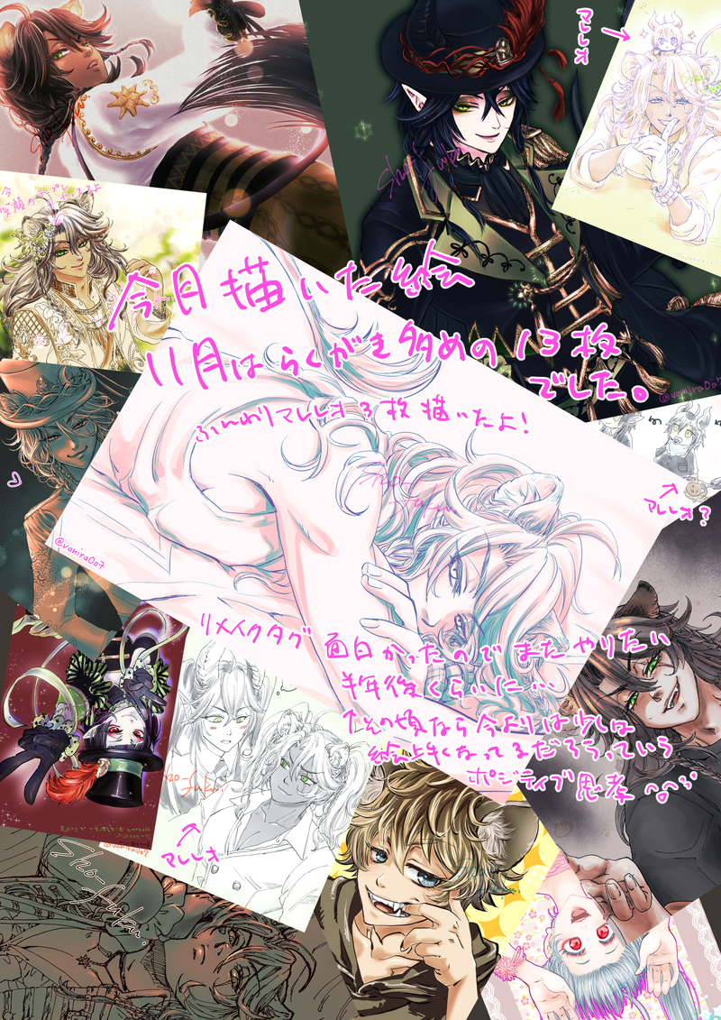 ・招福・☆quiet followDOODLE2023.11月相互様の線画をぬり絵させてもらったのと、リメイクタグで描かせてもらったやつ✨(皆様ありがとうございます🫶)自分では描かないポーズとか構図だから難しかったけど楽しかった☺️なおき先生の今日のポーズ面白いの多いから良い練習になるよね🙏ありがたい✨あとはプレフルと落書き色々😋 ##プレイフル・ドレス ##レオナ・キングスカラー ##マレウス・ドラコニア ##ラギ・ブッチ ##エペル・フェルミエ ##よその子 show all(+10 images) Tap to full screen (size:1500x2121).Repost is prohibited ・招福・DOODLE2025年6月実際に描いたって言えるのは2.5枚だわね😂差分はメディバンの練習には丁度良かったと思う〜不便ながらこれでちょっと操作慣れてきた☺️ 5 ・招福・DOODLE2025年4〜5月あれ?まとめた気でいたけどやってなかった…😇 7 ・招福・PASTいいねの数だけ歴代の推しを晒すタグのやつ5/11いいねの数は6なので1枚にまとめたかったけどおっきく描いちゃったから入んなかったまずは1〜3推しね直近の推しから始めたけど、3以降は思いついた順になりますよい😋続きはまた後日描き終わったらupするね〜5/184〜6推し追加☺️https://x.com/vanira0o7/status/1919805121334284564 2 ・招福・DOODLE2025年2月&3月upするの忘れてたので3月のもまとめちゃった😂 7 ・招福・DOODLE2025年1月御年賀RTAと🐉誕と🐉🦁コミュニティにupした3枚前半は調子良かったけどダメだった〜😂色塗り端折ったお絵描きしかしてないからちゃんと色塗りしないと塗り方忘れそうだわ 4 ・招福・DOODLE2024年12月お友達のハピバ絵と舞ちゃんとタマムイ🦁さんと🎄🐉🦁描きたいものだけ描いた12月でした(通常営業)一昨年は一年のまとめをして忘れた12月分だけど24年は忘れてなかったわよまとめたの25年になってからだけれども😌💦 6 recommended works リケコTRAINING練習🦁 135DOODLEテンプレやってみた!誓ニキと社長とレオナさん(混ぜてすみません)先に原作見て描くので影響受けるかなと思ったけど結構趣味が出てしまうものだな 3 リケコDOODLEおやすみ😴 はるまきDONEルーク先輩おめでとう!!!!!!! はてんCAN’T MAKE🦁レオ監(顔あり)🦁❤️と♠️にいつものごとく巻き込まれて、何故かマジフト部の更衣室に…(不思議〜★)そこで🦁パイセンに見つかり…って言うテキトー&ご都合設定。 3 white531812PAST過去絵をリメイクしようと 2 うつぼんぬレオ子TRAININGアイビスにトーンがあるって事を本日知ったのさ(爆)で。試してみたくて。でも使い方よく分からなくて💦分からないまま描いてみました🤣ラフ絵のままなのでいつも以上に汚い線です💦iPhoneで指描きしてます。線が指で隠れるので思ってる所に引けなくて何度もイライラします🤣 うつぼんぬレオ子DONE練習のラフ漫画。とりあえず2ページまで出来た。続きはまだ描いてない😅ネームはあるんだけど時間なくて💦🦁🐺だけど、えちぃのにするかギャグにするか両方にするかになるかと。相変わらずのiPhoneで指描きラフのままなので線もアレもコレも雑のままだけど今は流れを思い出したいし感覚戻す方が先な気がするので生暖かく見守ってくれると嬉しす😭環境整ったら描き直す予定。 2 うつぼんぬレオ子DONEチェカレオ完成!色塗り終わりますた( 'ω' و(و"♪背景追加するかもだけど←ホリデー帰省中にチェカに魔法を見せてと何度もおねだりされるレオナ。離宮の庭に実る果実や木の実、花の蜜を魔法でお菓子にしてあげる優しいおじたん。レオナ自身も好きなので二人でオヤツに仲良く食べる。チェカのおねだりにいつも折れて負けてしまうおじたん。2人きりだととても優しい空気に包まれ過ごしている。あーん したりしてあげたり❤とっても仲良しな🧶🦁(イチャイチャしてるが本人は無意識、無自覚)チェカから聞かされ一度で良いから食べてみたい兄だがチェカにしか作ってあげない弟。兄は食べる事が出来る日がやって来るのか!?頑張れ国王陛下!負けるな国王陛下!!侍従がこっそり撮った写真を見せてもらったファレナは悶々とした夜を過ごすのである。レオナぁ~お兄ちゃんも食べたいよぉぉ(泣)そんな展開で描きたいんだ。伝われッ!!!(๑•̀ㅂ•́)و✧Twitterのチェカレオワンドロにこの絵に繋がるお話あげました。あと1ページ途中だけど💦