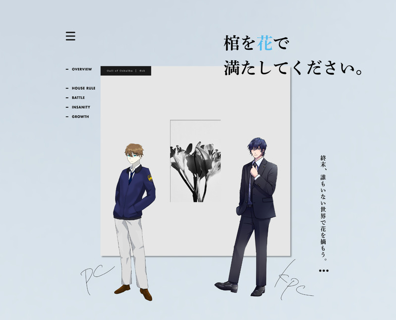 kojima_trpg☆quiet followINFOCoCシナリオ『棺を花で満たしてください』KP / KPCシマ さん / 大塚 麟太郎PL / PC小島 / 鷹見 尊生還 Tap to full screen (size:2405x1942).Repost is prohibited Let's send reactions! freqpopularsnackothersPayment processing Replies from the creator Follow creator you care about!☆quiet follow kojima_trpgINFOCoCシナリオ「静なるテロリスタ」HO異邦人・事前導入KPしろやぎ さんPC / PLウィルカ・アマル / 小島 kojima_trpgINFOCoCシナリオ「DDD」KPC / KPパメラ・ケンドール / シマ さんPC / PL吉祥 聖 / 小島END-A 両生還 kojima_trpgINFOCoCシナリオ「ダダ・ダ・ヴィンチ」KP小島PC / PL日向 侑久 / シマ さんEND4にて終了 kojima_trpgINFOCoCシナリオ「じょはり」KPふぃ子PC / PL葉倉 克己 / 小島END4にて終了 kojima_trpgDONEColor×Ki11erで使用した吉祥聖の立ち絵全身と胸上 2 kojima_trpgINFOCoCシナリオ「Color×Ki11er」PC / PLパメラ・ケンドール / シマ さん誘宵 導 / 紅琲 さんKPC / KP吉祥 聖 / 小島全生還
