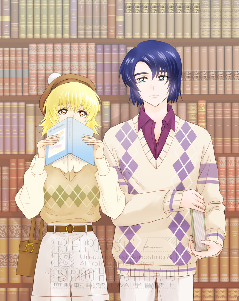 世間はスーツやフライトジャケットアスカガで盛り上がっているというのに今頃プレッピーです🤚(ところで、アスランが着てるセーターの腕のボーダー柄は左右に有りでいいのでしょうか??)