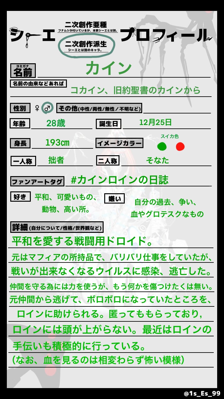 夏島裕治【ナツシマ ユウジ】☆quiet followDONE非公式シーエ亜種派生のカインです。※Es様に掲載許可、シートサイズ変更許可はいただいております。テンプレート作成→Es様(Twitter ID:@1s_Es_99)テンプレURL→ https://twitter.com/1s_es_99/status/1245891874591670272?s=61&t=IqSbgAKB6Nd_BaOb33cwAA ##非公式シーエ亜種派生 show all(+1 images) Tap to full screen (size:720x1280).Repost is prohibited Let's send reactions! freqpopularsnackothersPayment processing Replies from the creator Follow creator you care about!☆quiet follow 夏島裕治【ナツシマ ユウジ】DONE夏島の主となる創作の主人公、森川のキャラシです。 夏島裕治【ナツシマ ユウジ】DONE理科担当のジェイド先生キャラシです。 夏島裕治【ナツシマ ユウジ】DONE実の吸血鬼双子の兄妹、鬼城兄妹です。 2 夏島裕治【ナツシマ ユウジ】DONE自創作の『If Crimson』の主人公、天馬ヒイロ君と、その妹、天馬マヒナちゃんです。 2 夏島裕治【ナツシマ ユウジ】DONEX企画「鶯の鳥籠」のファンアートです。※自分は不参加ですが、諸々許可を頂いています。 2 夏島裕治【ナツシマ ユウジ】DONEプレゼントした色紙。(リクエストもらいました) 2 recommended works サトちぅDOODLE今日のお絵描き 3 おシシPROGRESSうちよそ __mitsukamiDOODLEことしもよろしくおねがいします💜💗 __mitsukamiDOODLEつむつむ💜💗ちゃん __mitsukamiDOODLEだっこちゃん💜💗😊😊 yuberaTRAINING逆バニーつかさくんとガーディアン(+差分2枚) 3 山田けんげんDOODLEあるはじ mecoponitaDONE創作緑の子はよその子黄色頭と黒髪は親子創作って楽しいね…☺ 7 ももせみどりDONEできちゃ〜〜!!!表紙と裏表紙!肌色気になるから起きたら調整くらいはする… 3