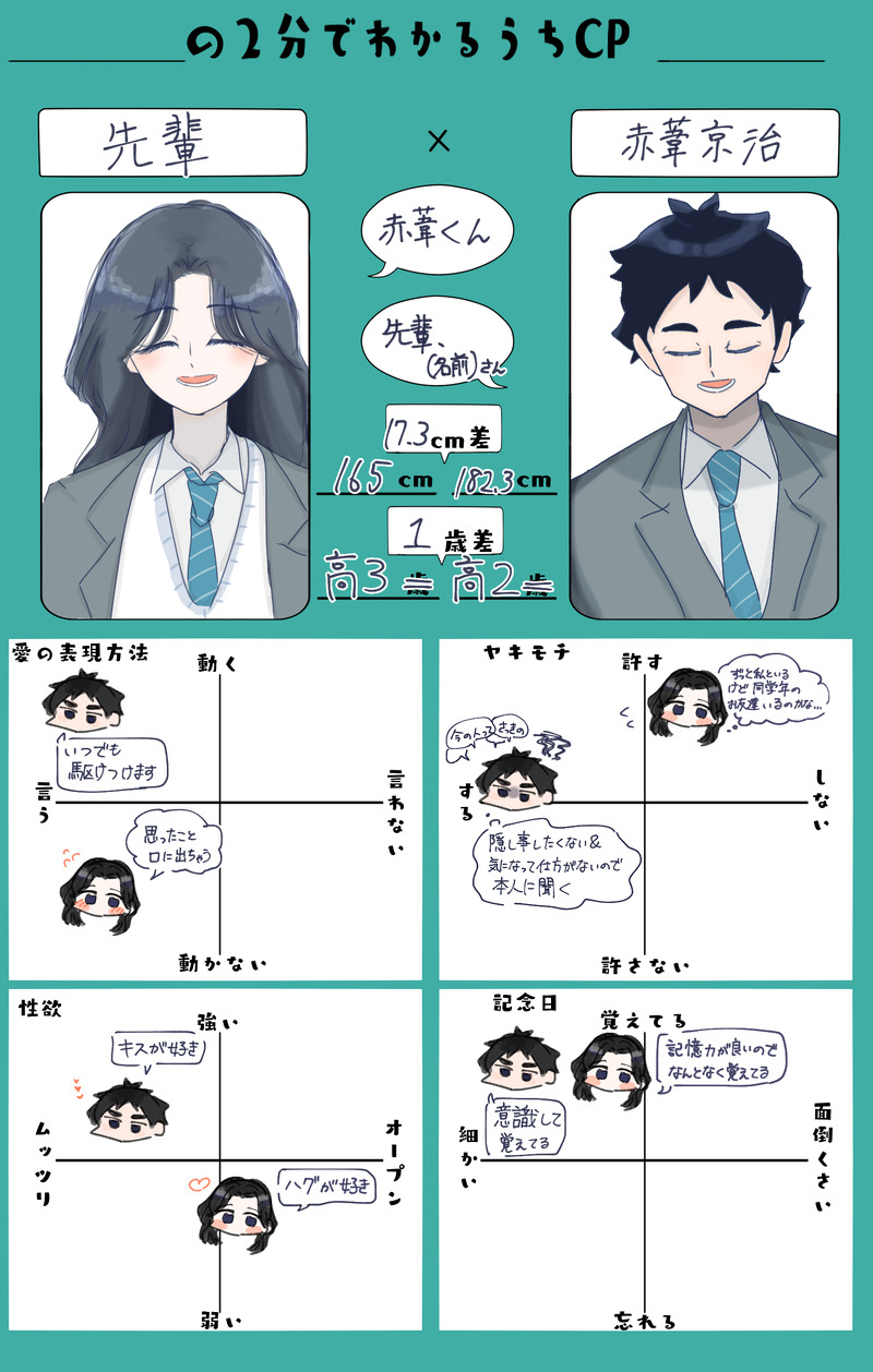 ior_hy☆quiet followDOODLE⚠️夢主顔あり。テンプレお借りしました。後輩アカアシくんと先輩彼女の先輩の身長とか性格とかちょっとしたプロフィール的なやつです。 show all(+1 images) Tap to full screen (size:1570x2469).Repost is prohibited Let's send reactions! freqpopularsnackothersPayment processing Replies from the creator Follow creator you care about!☆quiet follow ior_hyDOODLE⚠️夢主顔あり。テンプレお借りしました。後輩アカアシくんと先輩彼女の先輩の身長とか性格とかちょっとしたプロフィール的なやつです。 2 ior_hySPOILER2枚目からペンも描き方も変えたので絵が全然違います 恥ずかし〜 2