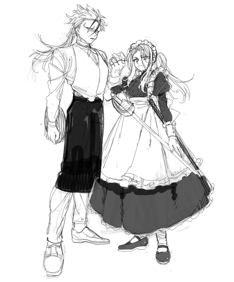 ヴィクジュイにいろんな服着せたいなの絵の下書き