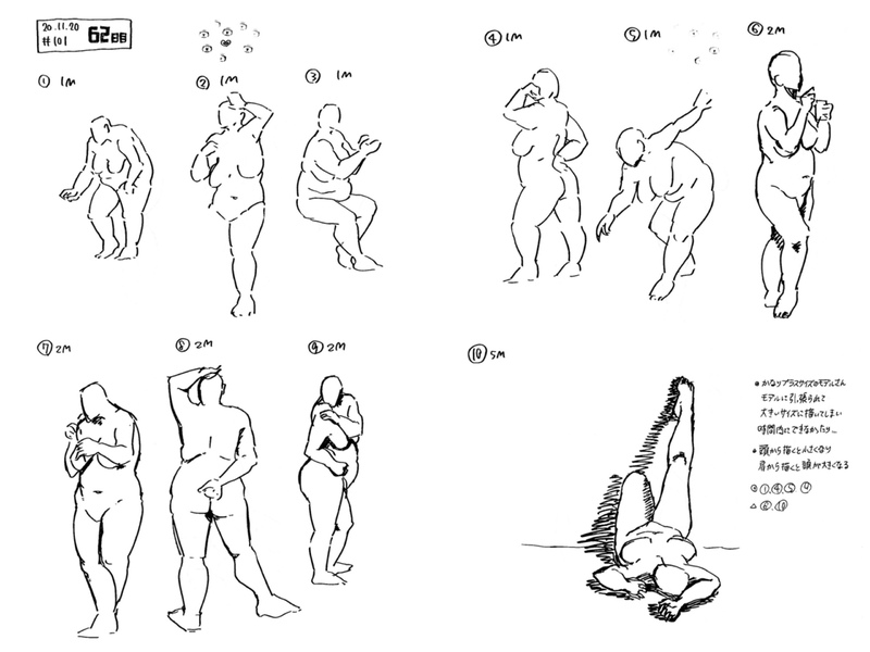 初めて描く体系に大苦戦 モデルに引っ張られて紙に大きく描きすぎる事件多発😔