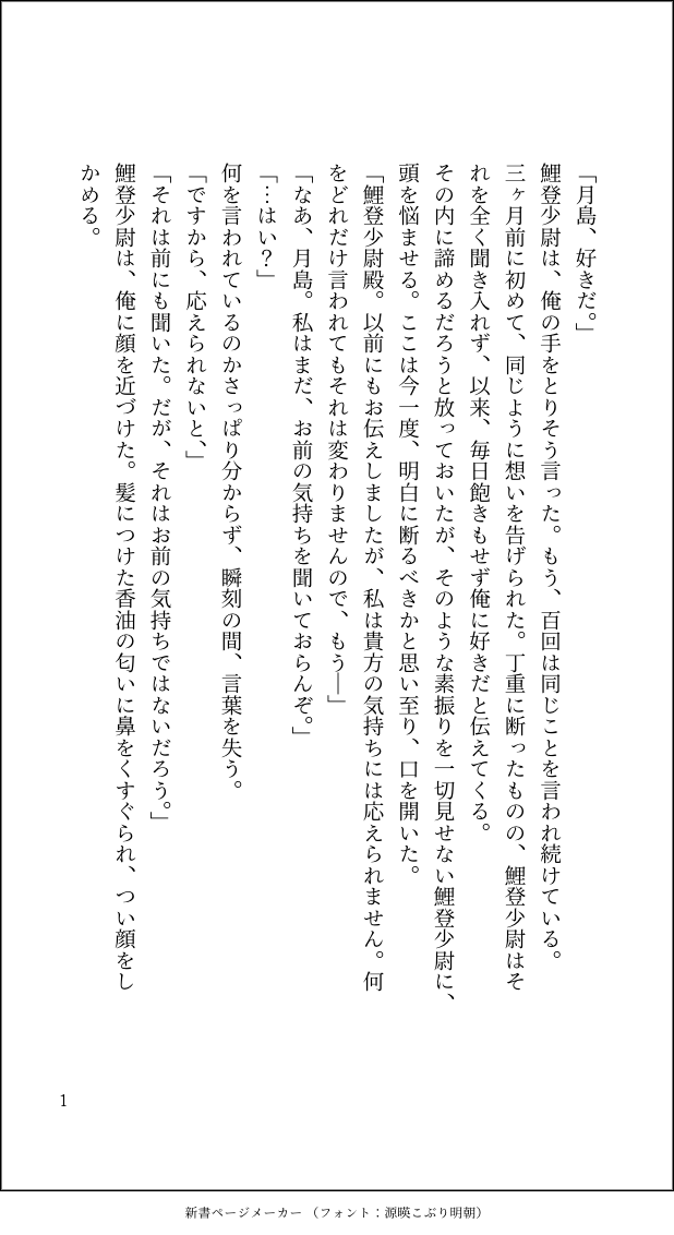arisa_3158_0☆quiet followDONE鯉月ちゃん(月島視点)書いた鯉登にたじろぐ月島のお話し show all(+3 images) Tap to full screen (size:618x1132).Repost is prohibited Let's send reactions! freqpopularsnackothersPayment processing Replies from the creator Follow creator you care about!☆quiet follow arisa_3158_0DONE現パロ鯉月ちゃん書いた色々考えすぎちゃう鯉登とそれを一蹴する月島のお話し 4 arisa_3158_0DONE鯉月ちゃん(月島視点)書いた春のある日のお話し 2 arisa_3158_0DONE現パロ勇尾書いた初めてお泊まりする2人のお話し 6 arisa_3158_0DONE房白前提杉→白(杉元視点)(現パロ)書いた 4 arisa_3158_0DONE現パロ勇尾(勇作さん視点)書いた雪の降る夜のお話し 4 arisa_3158_0MOURNINGセッしてる杉尾が書きたかったのに書けなかったので供養現パロです 12 recommended works hinaki0324DOODLEWho's a good doggie?⚠BDSM暗示、Dom/Sub、顏射、束縛18↑? 3 letter words Moca_V_channelSPOILERCoCパラクラ自陣HO2デリクの継続シナリオ「かじ恋」セッションのとあるシーン。KPCと一緒に。イラストby毒毒ちぃの様https://x.com/dkdk_chiinoデリク原案Mikei様:https://mikei.booth.pm/ 白羽うい@男性向け(進捗二人目)DOODLE1/9 Deu_in_the_AirDOODLELate happy new year onikuchanPASTセバランまとめ 27 こんせんくんINFOアカウント連係間違えたコッチの垢がいつものです 2 かまぽこDONEフォロワーさんの学パロ本を手に取られた方限定オマケ漫画ですかまぼこのQRコードが載っている本のタイトルがパスです 4 桝野ヨシタカPASTスケッチブックに鉛筆手描き。iPhone8plusで撮影したやつ。K.O.F.シリーズ好きで。特にオッサンたちにハマってた。アーケードじゃなくてネオジオで遊んでた。今からやるなら、またパッド買わないと😌昔、同人活動してた頃はKOFとブシドーブレードでした。餓狼伝説も龍虎の拳もサムライスピリッツも遊びたくなるなあ。ワールドヒーローズならラスプーチンで…。 yuen25_trpgMEMOソプスク現行未通過×せっかくなので花ちゃん差分(最後の差分2枚は2人きりの会話用意していただいたので、急遽書いた表情☺️)とソプスクメモ落書きパスワードはHO4のモチーフ小説(漢字) 12