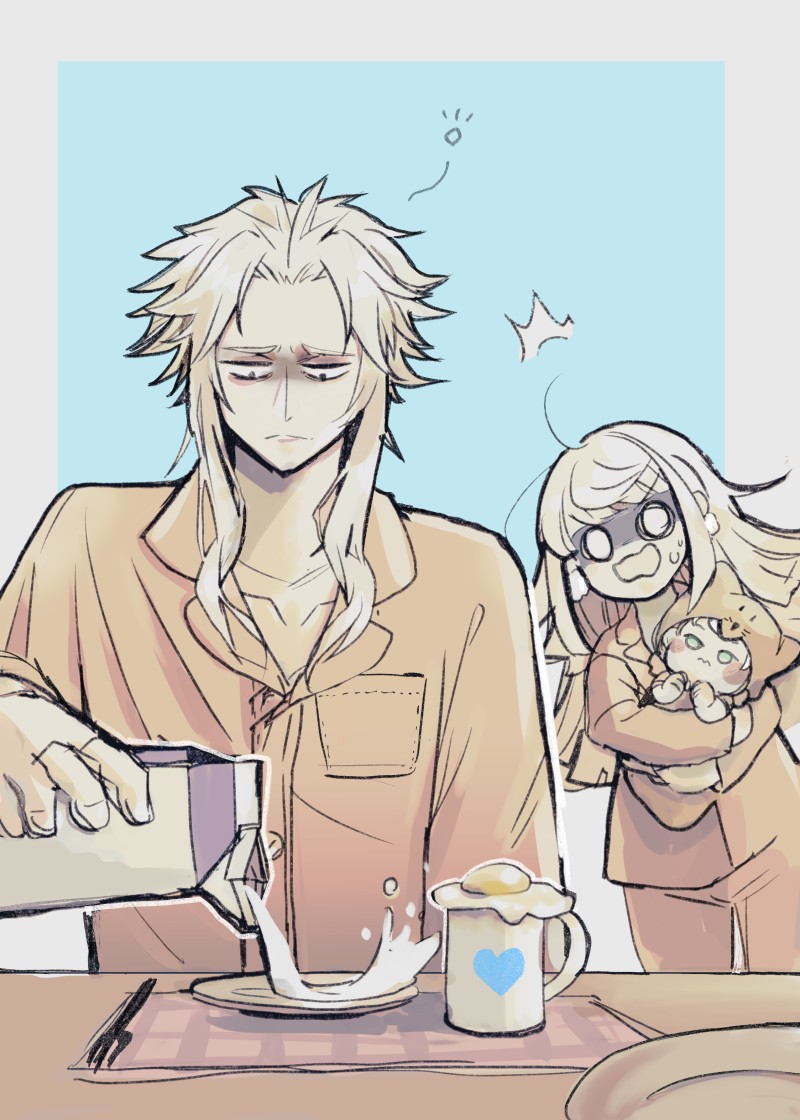 皿に牛乳をいれマグカップに目玉焼きをのせる司馬昭