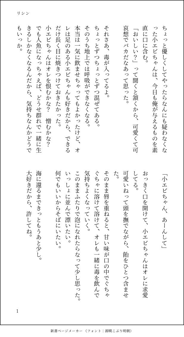 さきぴ☆quiet followDONEフロ監♂短編「リシン」監♂を餌付けして海に連れていこうと目論む ##フロ監短編 Tap to full screen (size:618x1132).Repost is prohibited Let's send reactions! freqpopularsnackothersPayment processing Replies from the creator Follow creator you care about!☆quiet follow さきぴDONEジェ→監♂→フロ短編「祈り」自分の気持ちが何かを知らないジェの字が、監♂をフロくんに近づけたくない一心で傷つける話 10 さきぴDONEジェ監♂短編「Suger」人間への興味から始めた関係に、勝手に溺れて死にかけるジェの字 9 さきぴDONEジェ監♂短編「明日を知らない」どうしたっていいよという雰囲気を出しつつ、どこにもいけないように、約束と体とで縛りつけるなどする 8 さきぴDONEジェ監♂短編「運命の人」「夜を駆ける」の監♂視点、まだ何の別れも知らない幸せな子ども 12 さきぴDONEジェ監♂短編「夜を駆ける」兄弟のために身を引くと決めた最後の夜の話 11 さきぴDONEジェ→監♂→フロ「エンドゲーム」監♂に片思いしているジェがフロのふりをして監♂と付き合い出すいずれ終わる関係の話 13